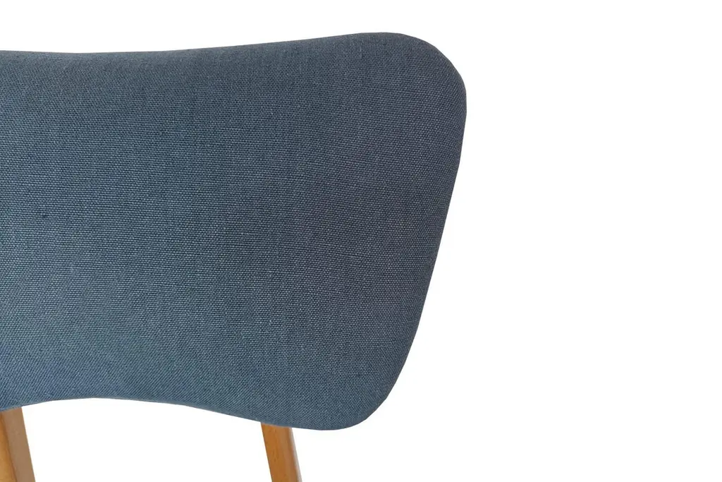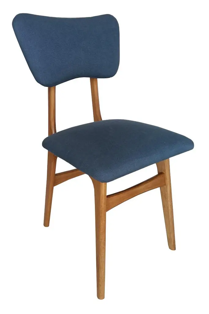 Dining chair called "Butterfly" with oak stained beech legs and fully upholstered seat and back in beautiful french fabric.This chair can be customized to your specifications or COM. Wood, stain, finish, fabric and custom dimensions options are available. Please check samples on the last pictures. Fabric used in this option:Pierre Frey fabric BEAUCAIRE color DenimElegantly casual, this heavy linen canvas fabric with subtly faded colors has vintage charm from edge to edge.COMPOSITION: 100 % LinenMARTINDALE 25.000 cyclesThis is vintage chair after professional renovation. Designed in 1960s in Poland.