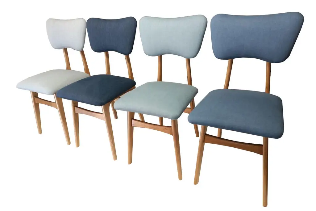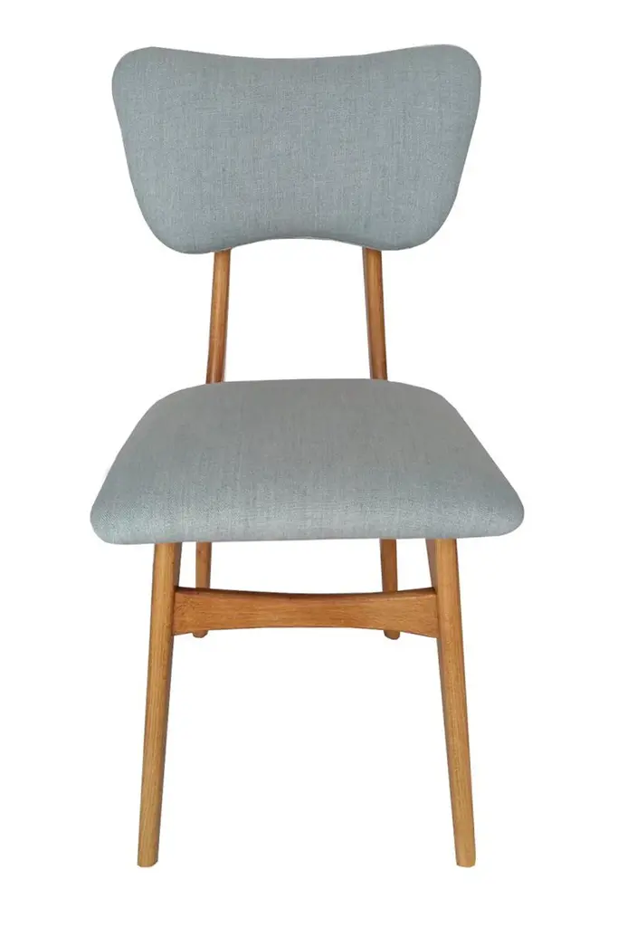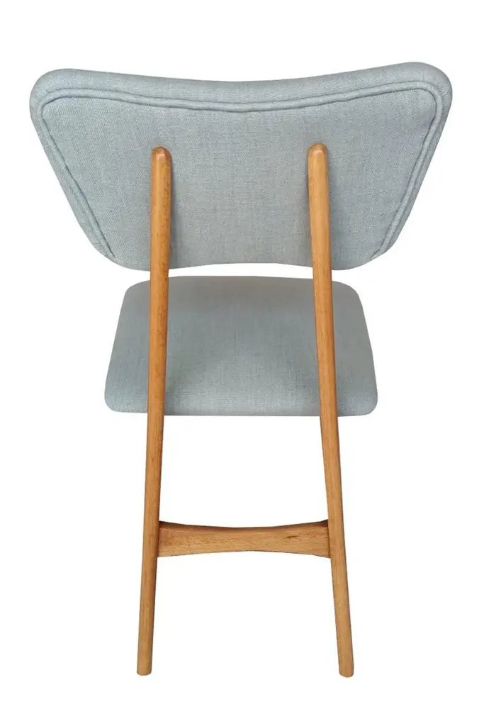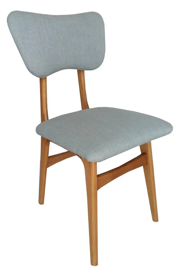 Dining chair called "Butterfly" with oak stained beech legs and fully upholstered seat and back in beautiful french fabric.This chair can be customized to your specifications or COM. Wood, stain, finish, fabric and custom dimensions options are available. Please check samples on the last pictures. Fabric used in this option:Pierre Frey fabric BEAUCAIRE color OrageElegantly casual, this heavy linen canvas fabric with subtly faded colors has vintage charm from edge to edge.COMPOSITION: 100 % LinenMARTINDALE 25.000 cyclesThis is vintage chair after professional renovation. Designed in 1960s in Poland.