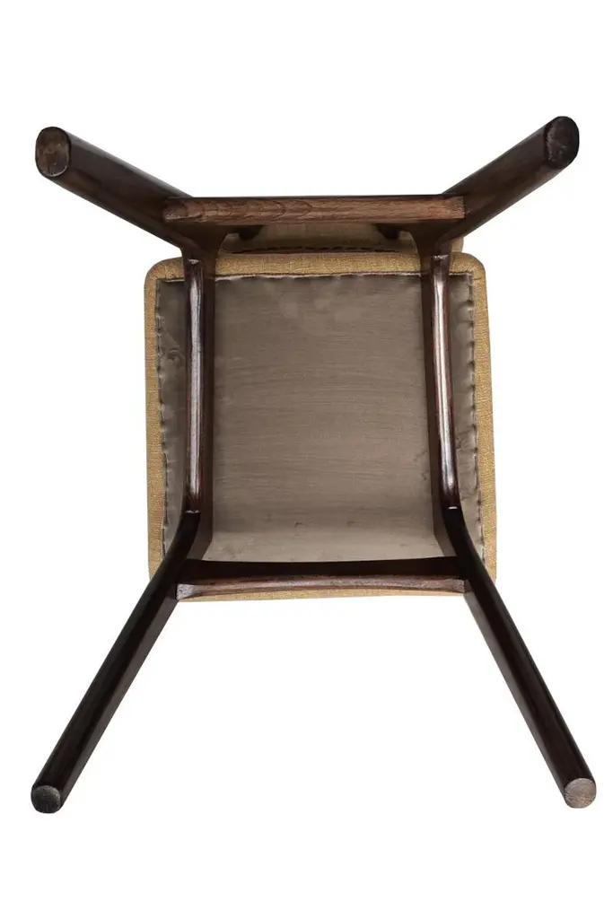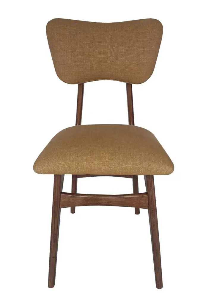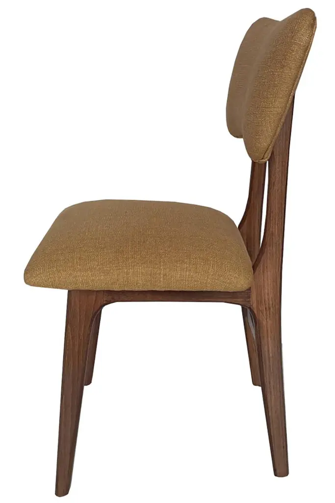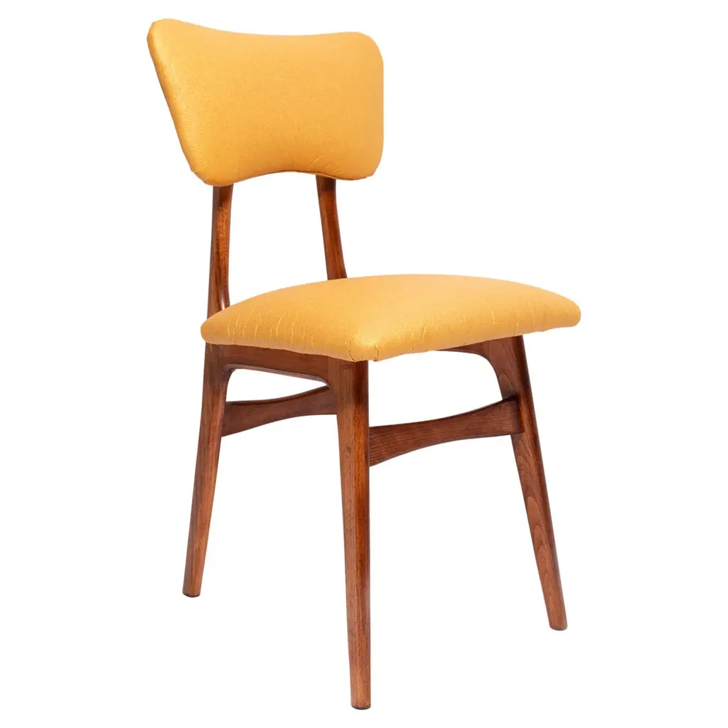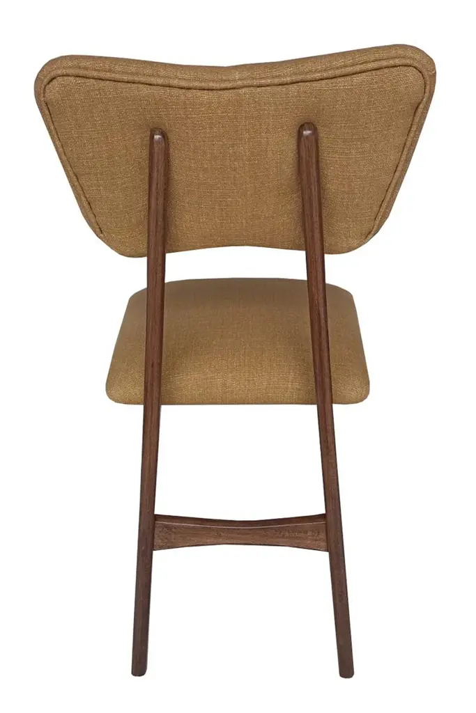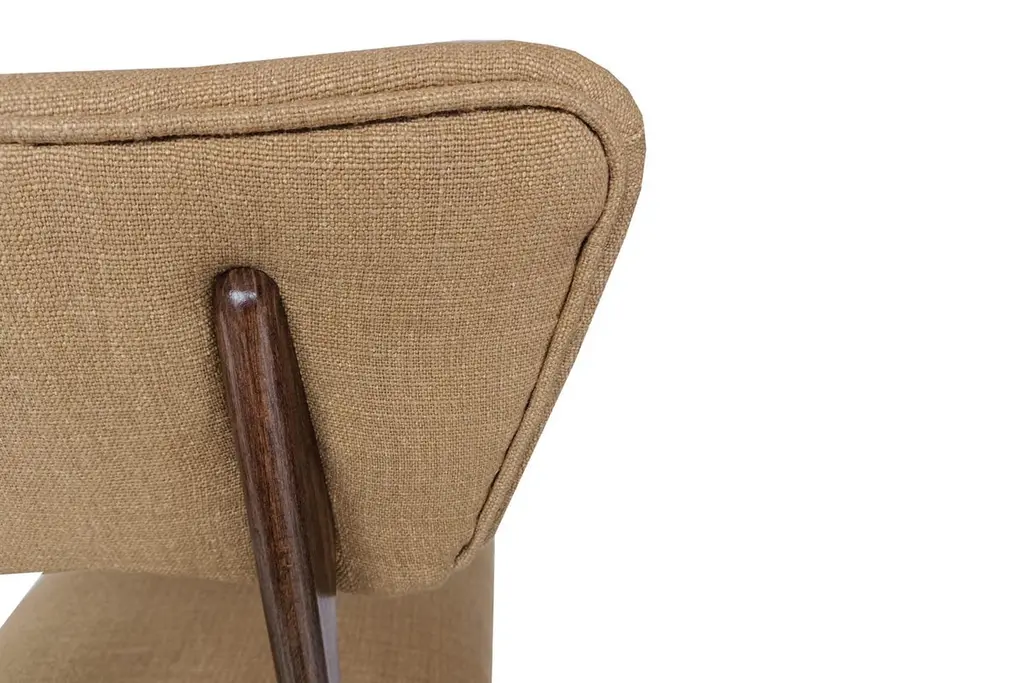 Dining chair called "Butterfly" with walnut stained beech legs and fully upholstered seat and back in beautiful italian fabric.This chair can be customized to your specifications or COM. Wood, stain, finish, fabric and custom dimensions options are available. Please check samples on the last pictures. Fabric used in this option:About the fabric:A compact panama weave of British wool and Belgian linen is defined by a subtle textural personality. The double piece-dyeing process confers a mélange effect and depth to the wide range of colours, for a fabric that reveals a woolly spirit in its natural shades and a silky inspiration in its fresh and luminous accents, while reinventing a classical sartorial taste. The multiple phases of its manufacturing process confer softness to the gravitas of the materials, resulting in an unmistakeable hand-feel that is firm and pleasing. Water-repellent and hardwearing, it is well suited to intensive upholstery applications as well as curtains.Composition: 66% Virgin Wool 21% Linen 13% Polyamide