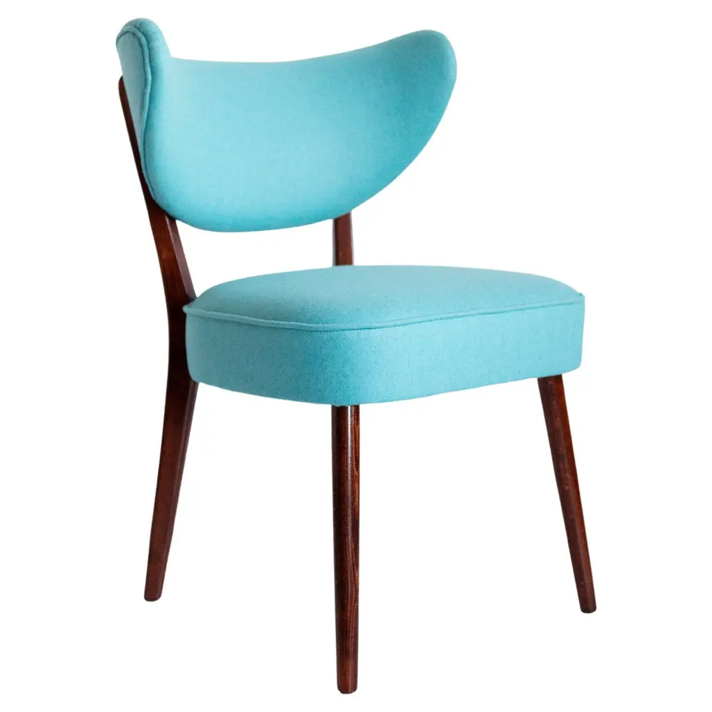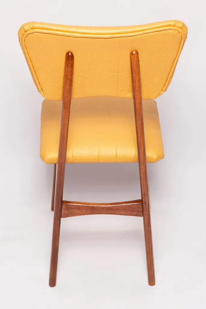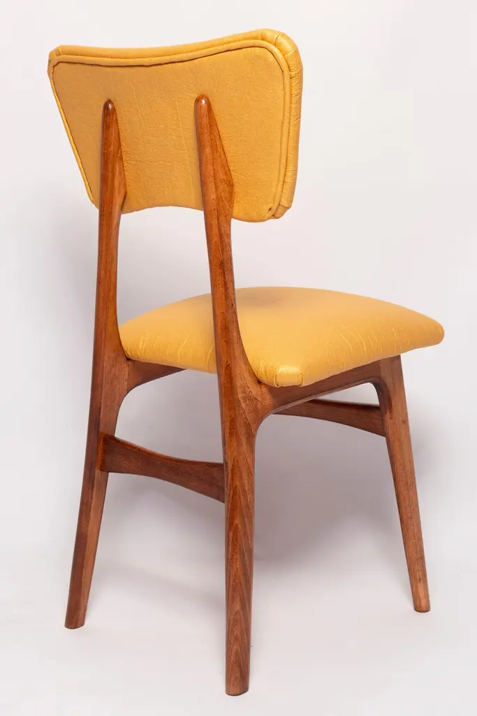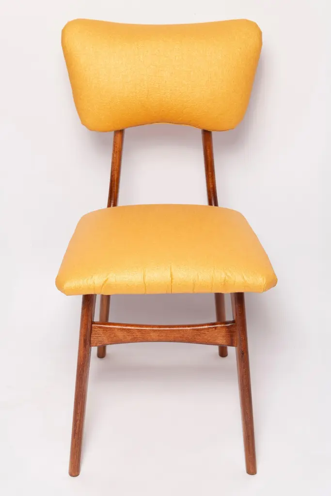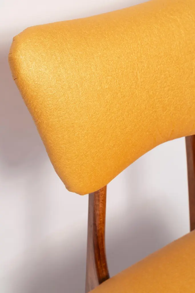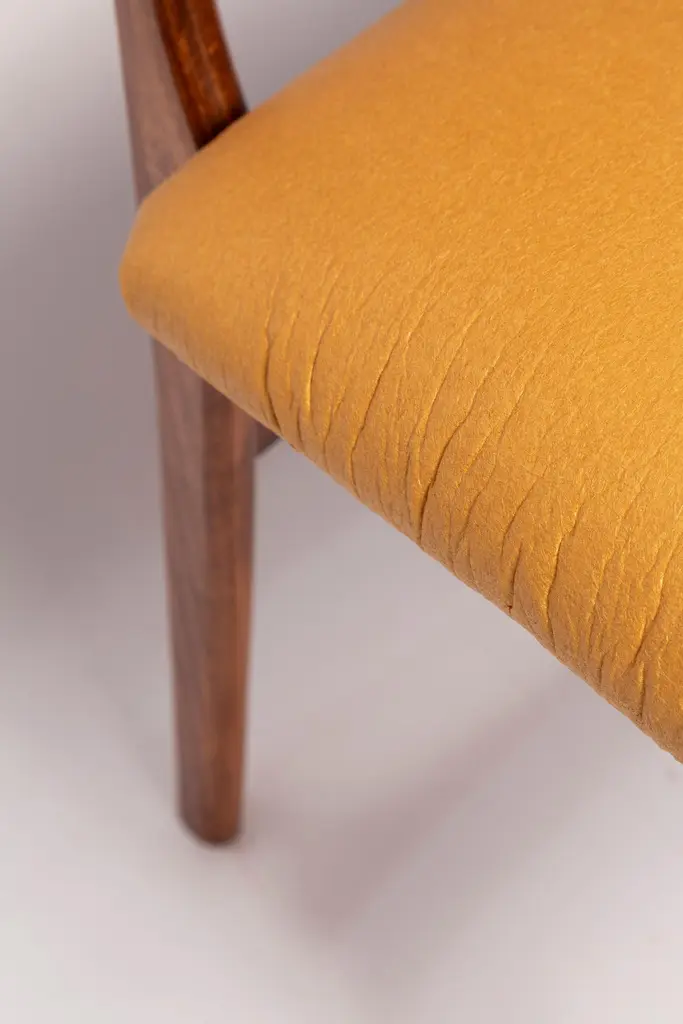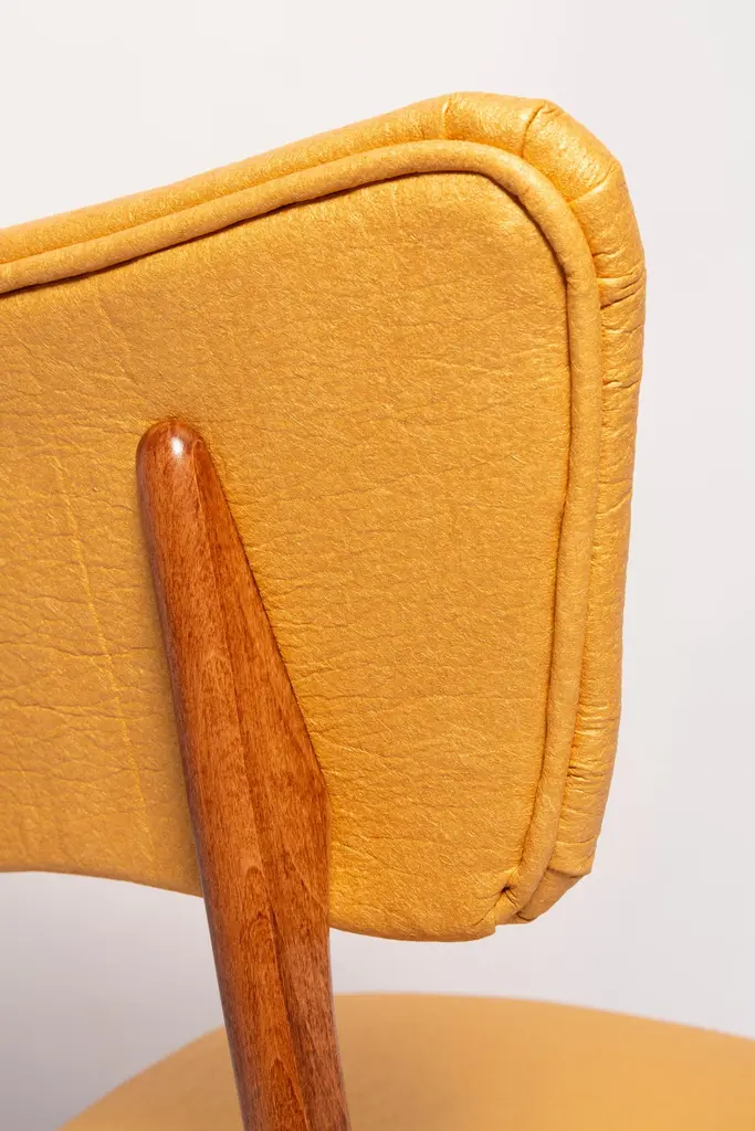 Dining chair called "Butterfly" with medium light stained beech legs and fully upholstered seat and back in vegan pineapple leather.Piñatex which we used for renovation is made from the waste leaves of the pineapple plant. These leaves are a by-product from existing pineapple harvest, so the raw material requires no additional environmental resources to produce. Looks like paper but it's really amazing in using. 100% vegan! This chair can be customized to your specifications or COM. Wood, stain, finish, fabric and custom dimensions options are available. You can also choose another pinapple leather color - ask for more informations. This is vintage chair after professional renovation, ready to use. Original designed in 1960s in Polish Furniture Factory.