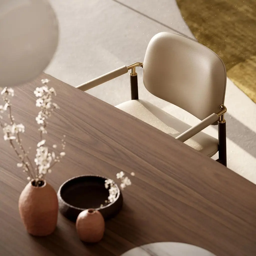 Mid-Century Modern Dining Chair With Minimalist Brass Accents