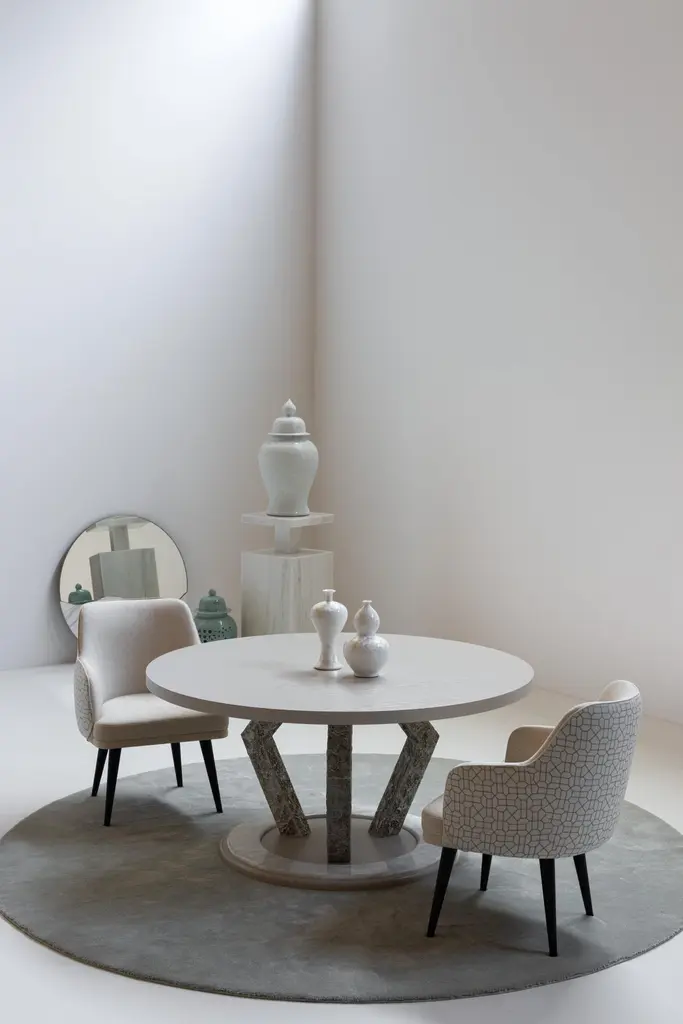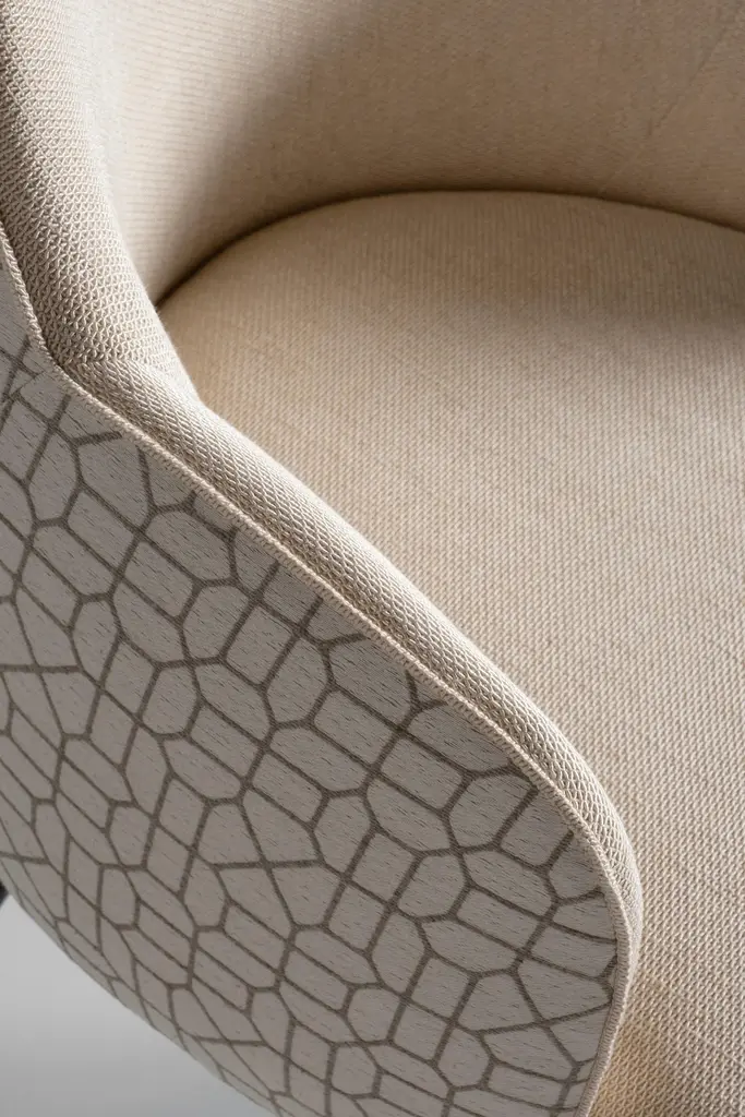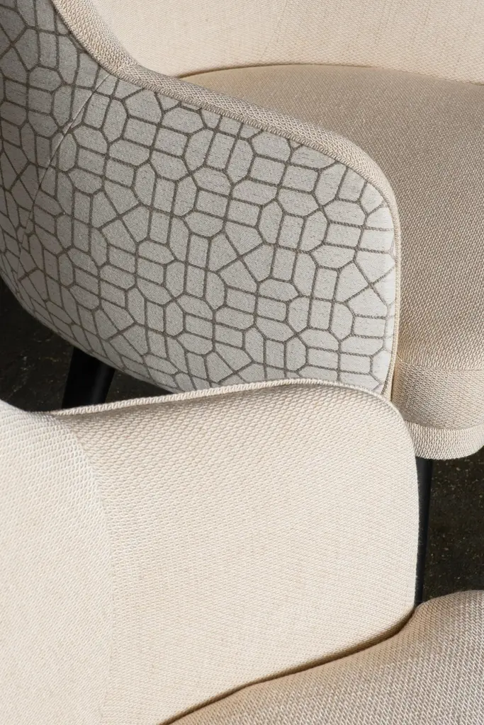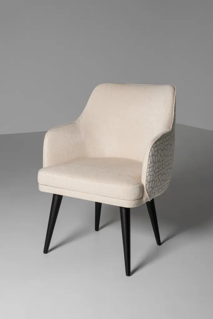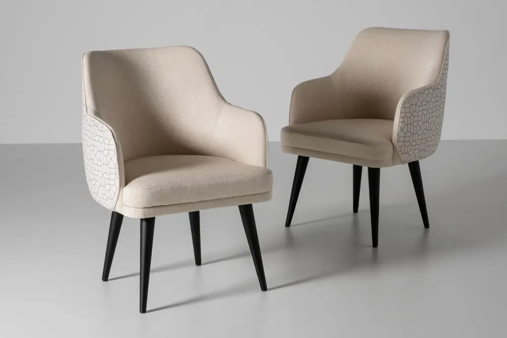 Mid-Century Modern Margot chair, Modern Collection, Handcrafted in Portugal - Europe by Greenapple.The Margot dining chair was designed to redefine modern living with effortless refinement. Its graceful lines and expertly crafted upholstery create a warm, inviting presence, elevating any dining space with understated charm. Balancing design and function, the Margot dining chair offers an experience that lingers in memory—because true design is not just seen, but felt.The Margot dining chair is upholstered in plain beige linen fabric on the inside and beige linen fabric with pattern on the outside.Its anti-fungal and vermin-free solid beech legs are closed-pore stained in black with a matte varnish.Seat and backrest structure, made from birch plywood, ensures strength and stability.Designed to withstand humid environments, it is also suitable for outdoor use when customized with weather-resistant fabric.The Margot dining chairs can be customized in terms of dimensions, materials and finishes.Margot Chair Material CodesWD110 Beech, Stained Closed-pore, Varnished, Black, MatteM100414 Linen, BeigeM102591 Linen, BeigeHandcrafted in Portugal - Europe by GreenappleUnique by design, Crafted by peopleGreenapple transforms contemporary spaces into exclusive narratives of design and craftsmanship. From custom-made furniture to bespoke interiors, each creation is a timeless work of art, shaped by master artisans who honor centuries-old techniques.Founded in 2005 by Sérgio Rebola and Rute Martins, Greenapple has earned global recognition among high-end clientele and leading design firms. While Rute designs each unique piece, Sérgio ensures uncompromising quality from design to production and from production to your home. We provide a seamless experience, offering short production lead times, worldwide delivery within 7 to 10 days, and white-glove service upon request.For U.S. clients, we can handle customs clearance, and offer white-glove service as well upon request.Seat, Office Chair, Chair with Arms