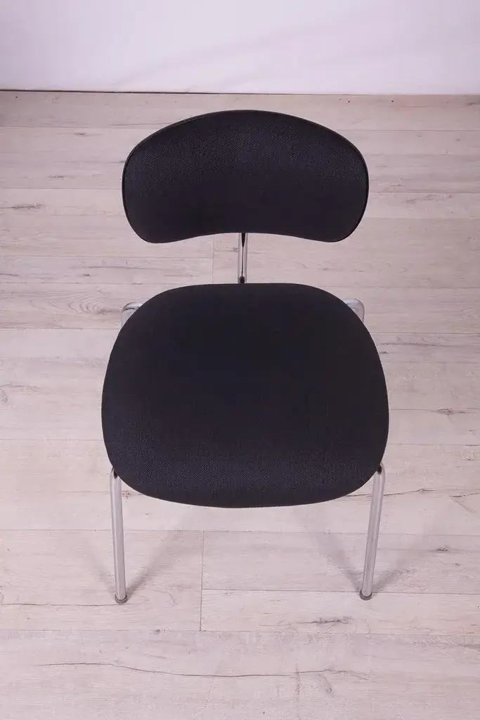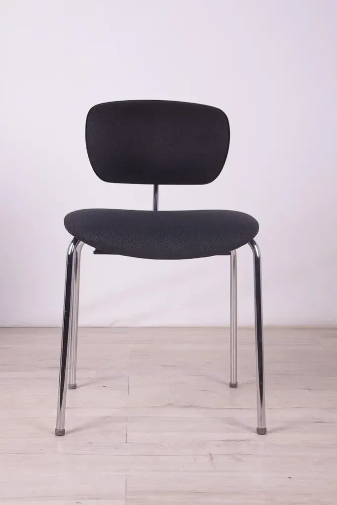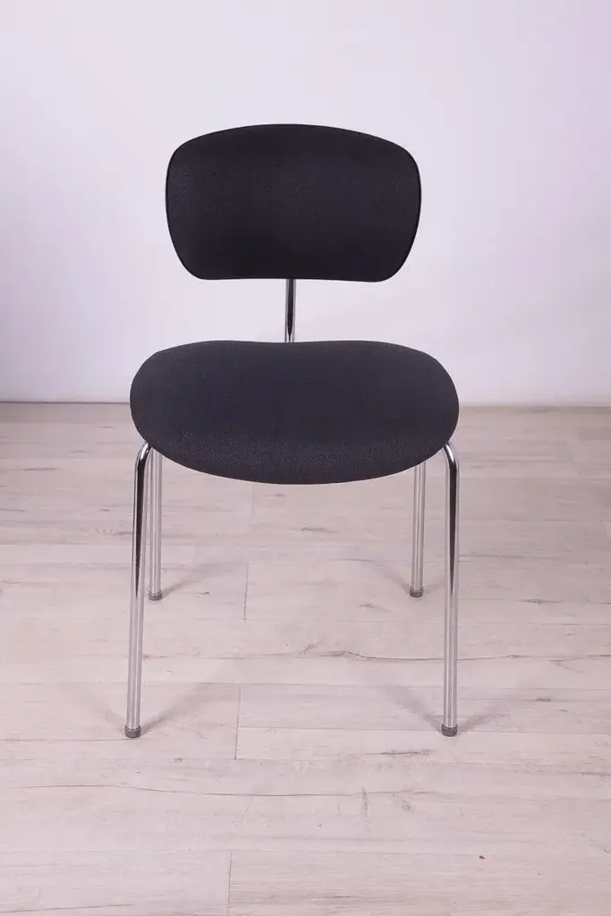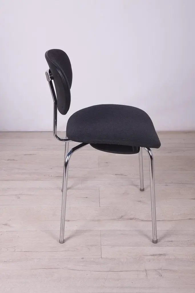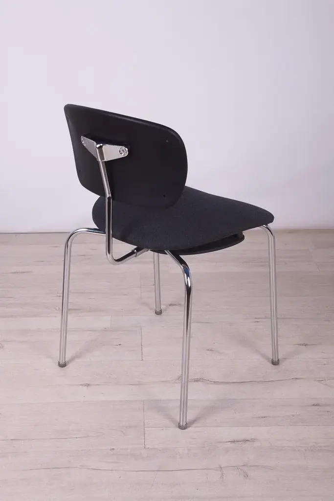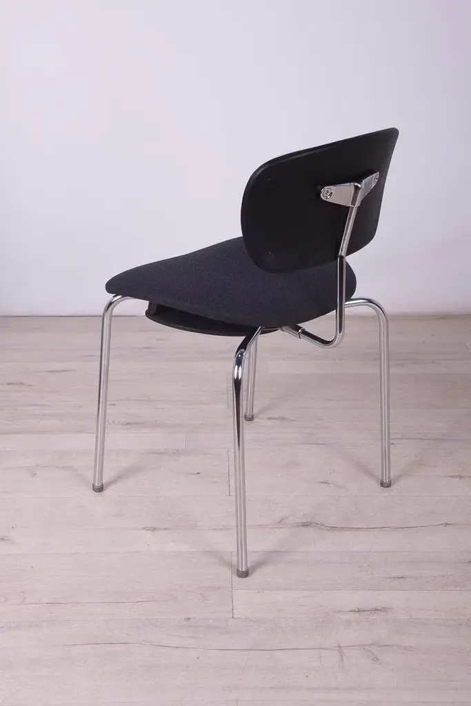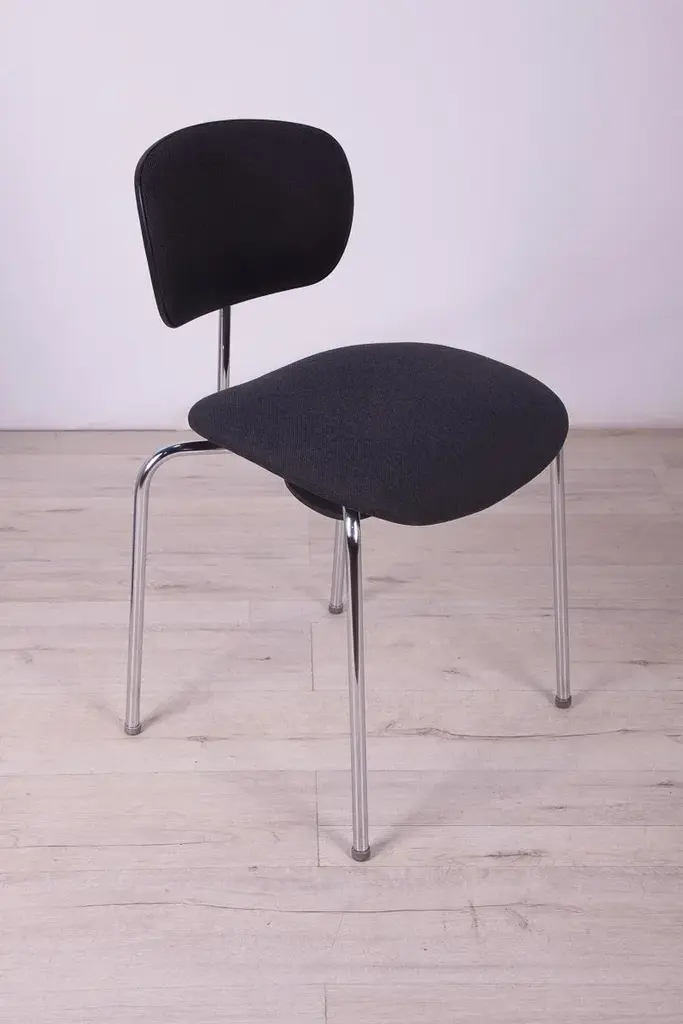 Chair designed by Egon Eiermann for the German manufacture Wilde & Spieth in the 1960s. The chrome steel frame has been cleaned and polished, and it is in perfect condition. Upholstery interiors replaced, upholstered with a new, high-quality black fabric. The back of the backrest is made of plastic. I have official proof of authenticity such as vintage catalogs, designer records, or other literature sources and take full responsibility for any authenticity issues arising from misattribution