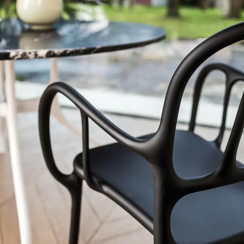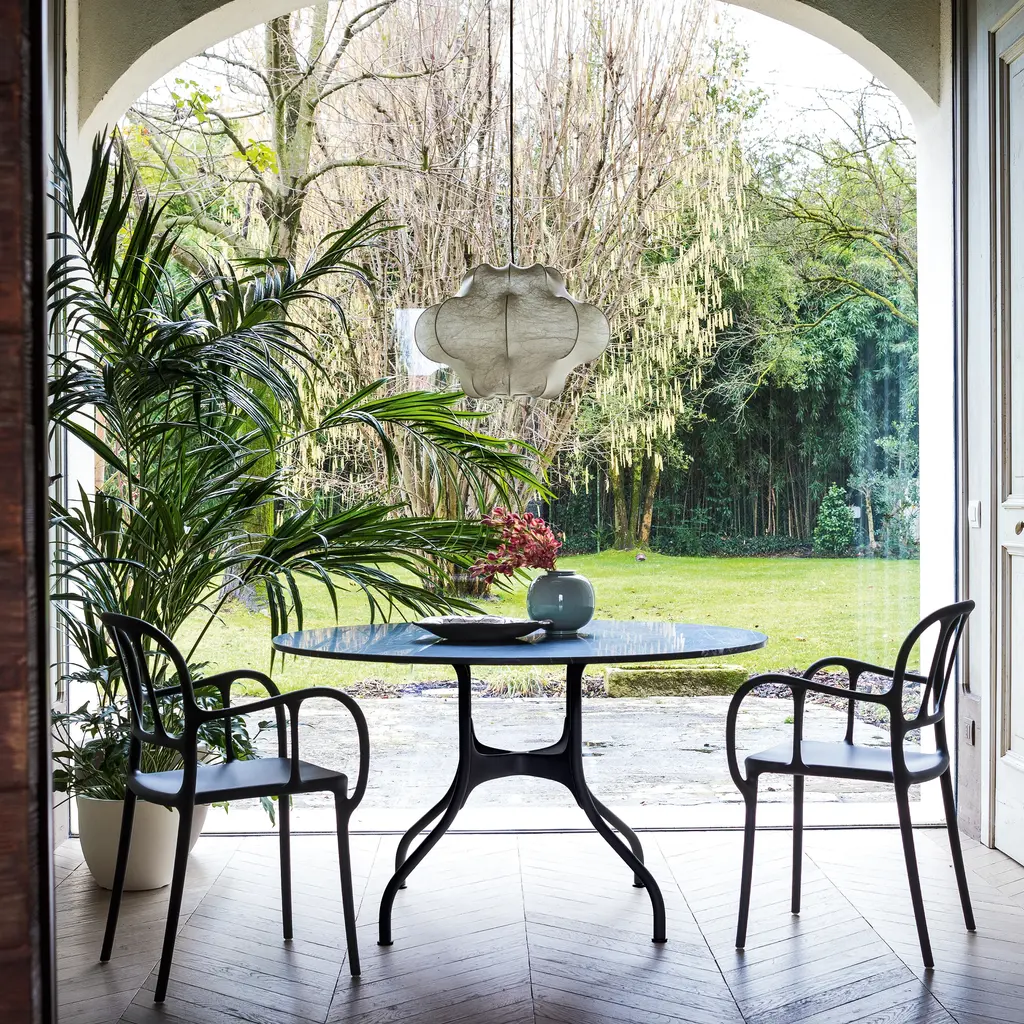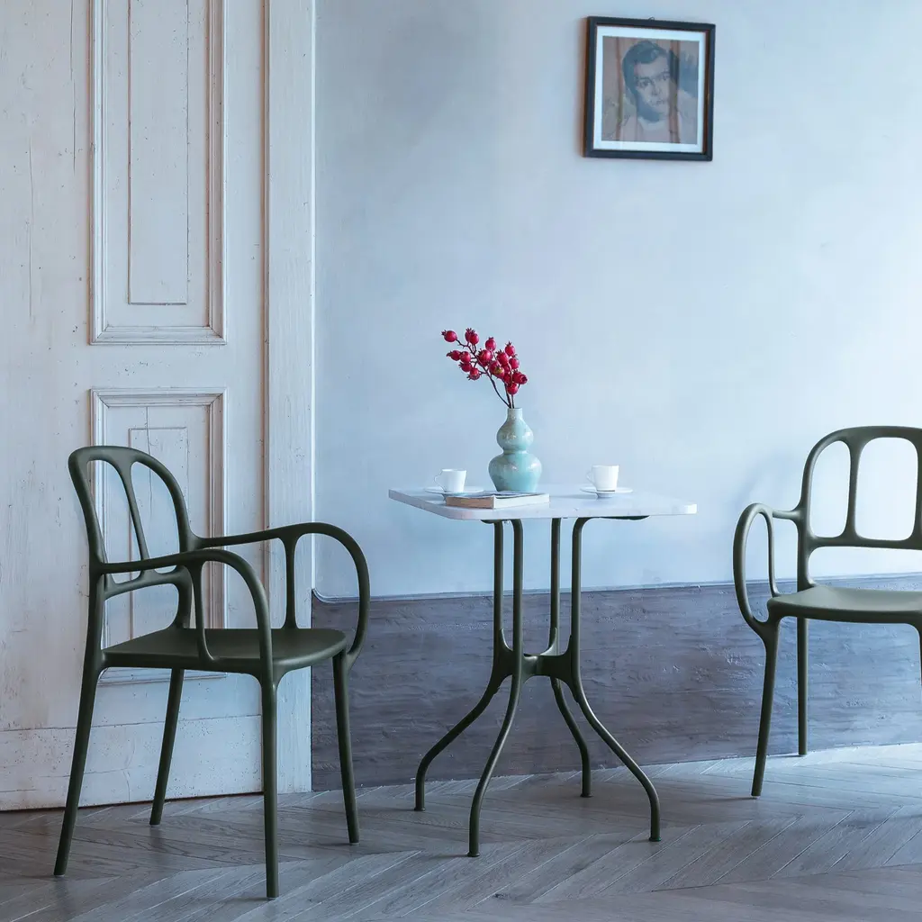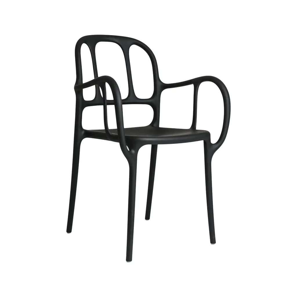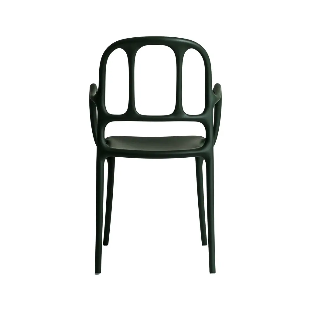 The Milà Armchair from Magis is a stylish and versatile addition to any space. Crafted from a durable mix of plastic and fiberglass, the chair offers an organic, dynamic shape with an elegant look. Its slender legs and ornamental back and armrests bring a modern charm to any environment, indoors or out. Highlights