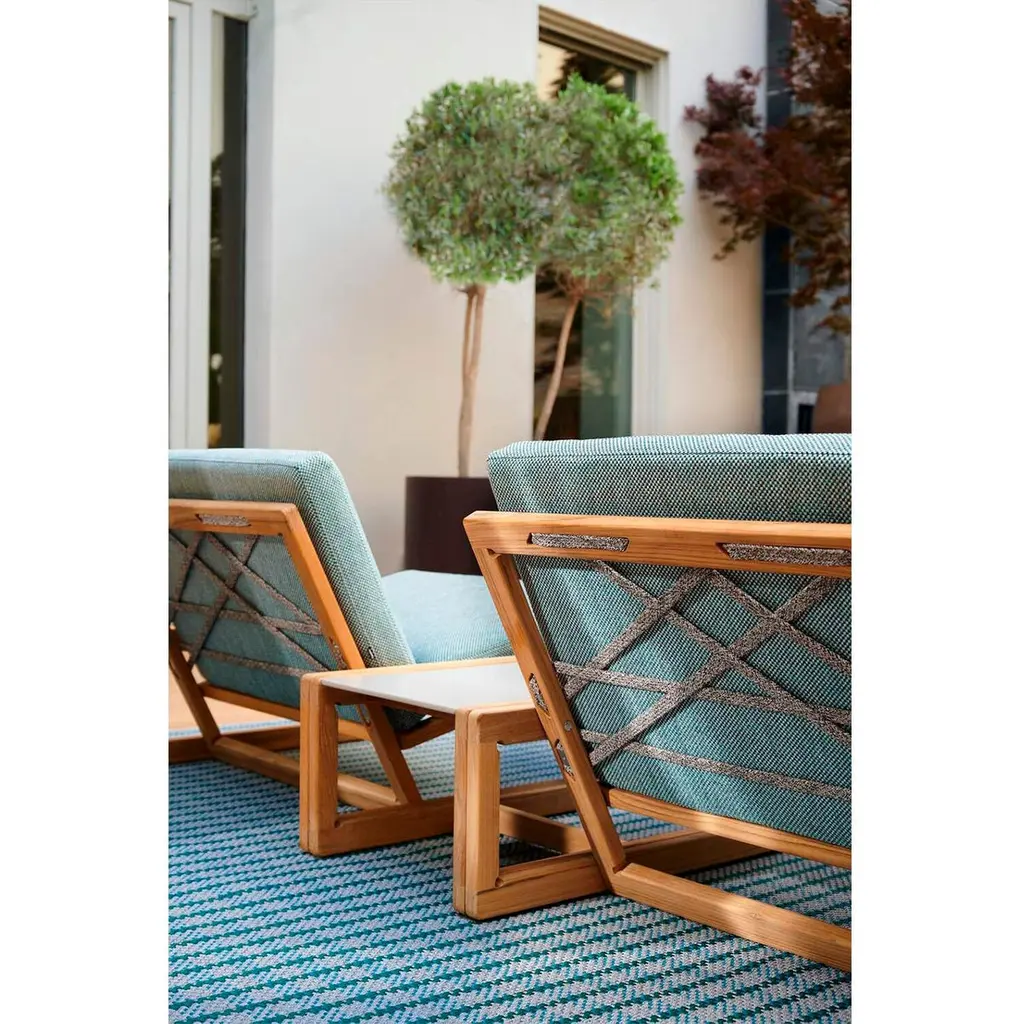 A stylish, minimalist outdoor armchair designed for the younger generation that invites the spontaneity typical of a day to be enjoyed outdoors. In 1967, Afra and Tobia Scarpa crafted a chair that speaks to an active, dynamic generation. The result is a comfortable, innovative design armchair that conveys practicality and comfort at first sight.Simple and yet sophisticated with its elegant system of joints and woven cord supports, Carlotta is perfect outdoor seating for casual comfort, thanks to its cushions padded with recycled PET fiber. Materials:WoodFabricMeasurements: H 69 cm W 86 cm D 87 cmImportant information regarding images of products:Please note that some of the images show other colors and variations of the model, these images are only to present interior design proposals. The item that is selling is on the first image. Important information regarding color(s) of products:Actual colors may vary. This is due to the fact that every computer monitor, laptop, tablet and phone screen has a different capability to display colors and that everyone sees these colors differently. We try to edit our photos to show all of our products as life-like as possible, but please understand the actual color may vary slightly from your monitorAbout the designer:Architect and designer Tobia Scarpa graduated in 1969 at the University of Venice and in the same year won a “Compasso d’Oro” prize for his “Soriana” armchair designed for Cassina. He has since been awarded many other design prizes and many of his designs can also be found on show in some of the world’s key museums, including his ‘Libertà’ chair on show at the Louvre.As an architect he has worked for both public and private clients including the Benetton Group for whom he famously designed the industrial area and production plants in Castrette di Villorba (Treviso). Even today, the Benetton facilities are still held up as an example of aesthetic-functional excellence, one of the world’s most exciting pieces of industrial architecture.About the manufacturer:In a continuing dialogue between past, present, and future, Cassina has created the I Maestri collection, revisiting furnishing designs by the 20th century’s best-known architects, including Le Corbusier, Pierre Jeanneret, Charlotte Perriand, Charles Rennie Mackintosh, Gerrit Thomas Rietveld, Franco Albini, Frank Lloyd Wright and Marco Zanuso. While the designs and functional concepts have been precisely preserved, the models have been manufactured using evolved technology. This is also the company that has manufactured iconic pieces of contemporary design from the 1950s to the present day, ideated by some of the most important international designers. Today Cassina continues to look to the future of design with audacious, passionate curiosity and an open, holistic approach. It affirms its exclusive ability to furnish a home’s living and dining spaces completely and iconically with The Cassina Perspective: a concept, a philosophy, an informed, futuristic thought. A detailed, expansive horizon of combinations; when placed together, the products have an innovative soul and the modern icons create authentic, welcoming, personal atmospheres involved in a conversation dominated by a code of design excellence, formal sensitive awareness, solidity and cultural authority.