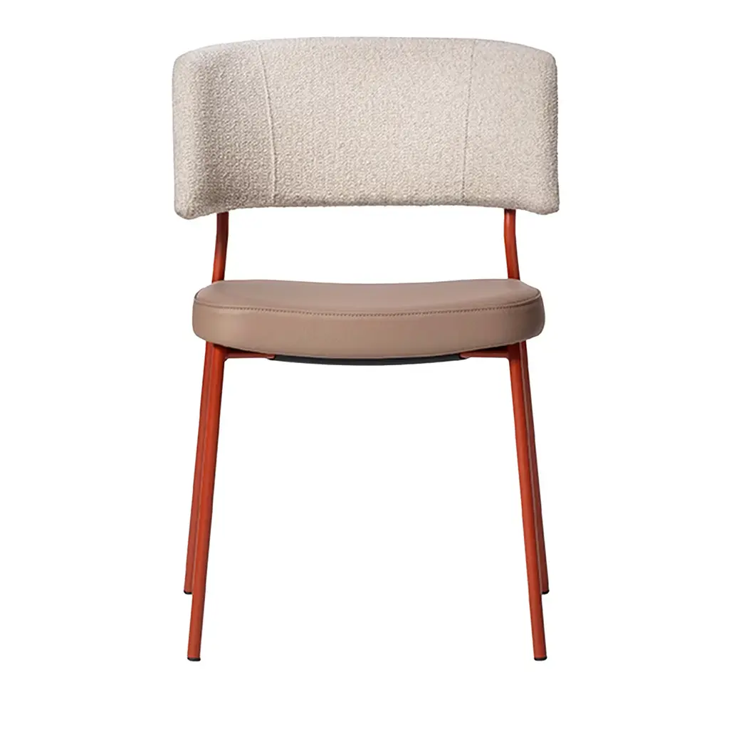 A classic and casual dining seating perfectly sums up the quality of Jolien by DF. The separated seat and backrest are upholstered in mixed fabric and framed in slender black metal. These dining chairs match a traditional, minimalist, or even industrial kitchen.