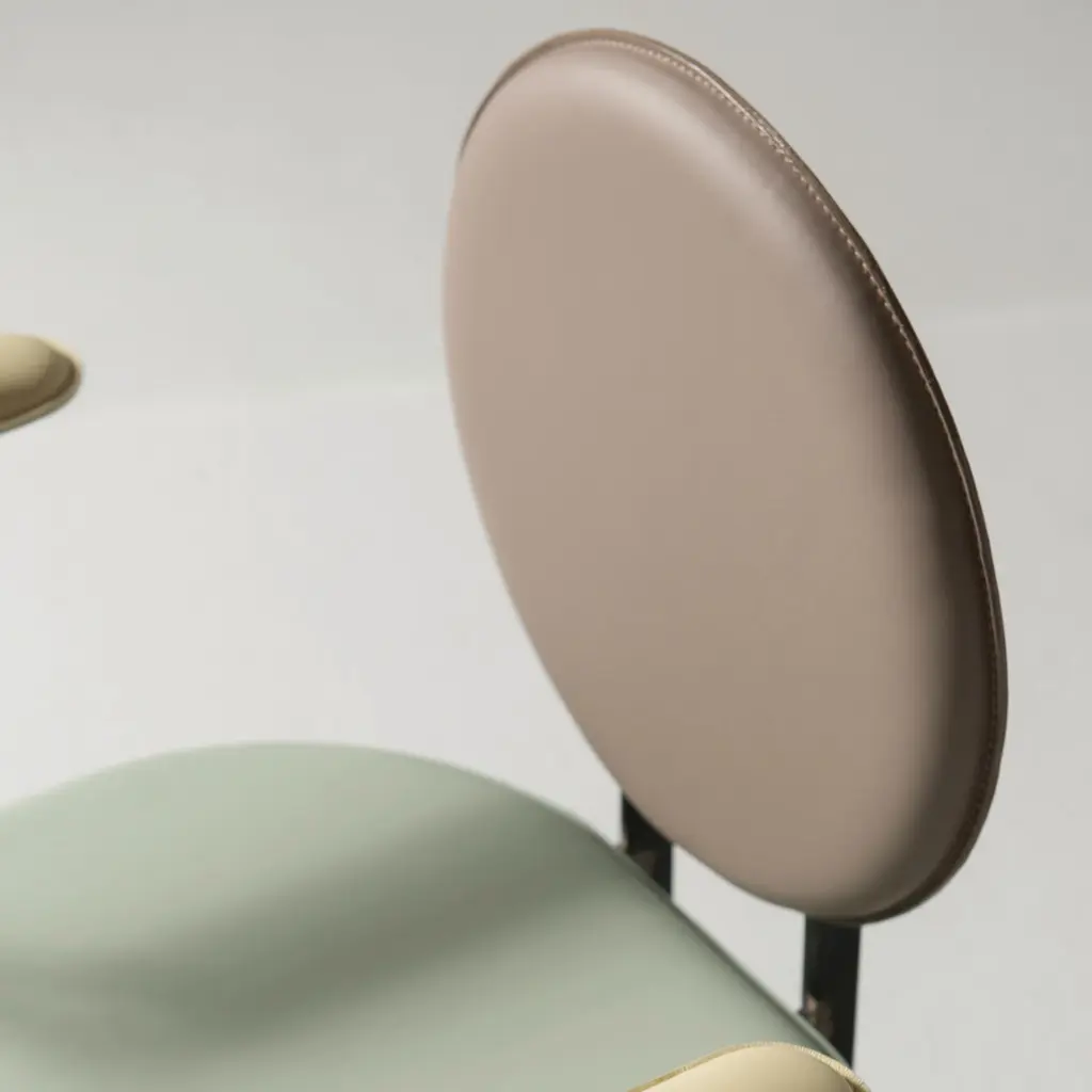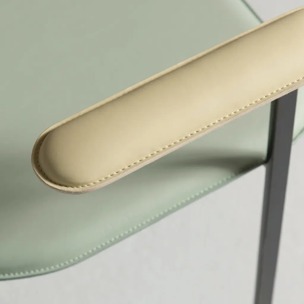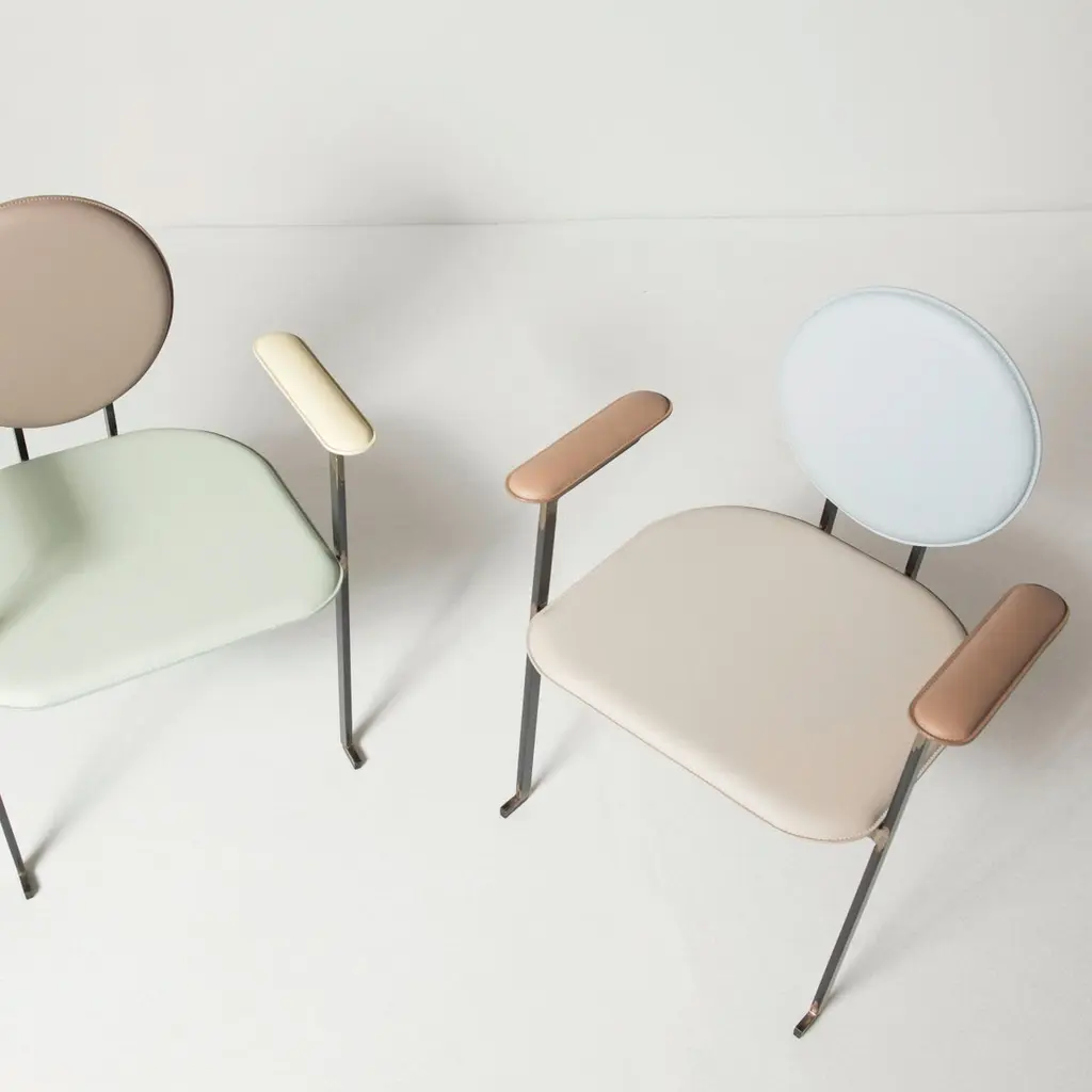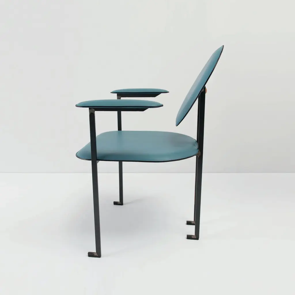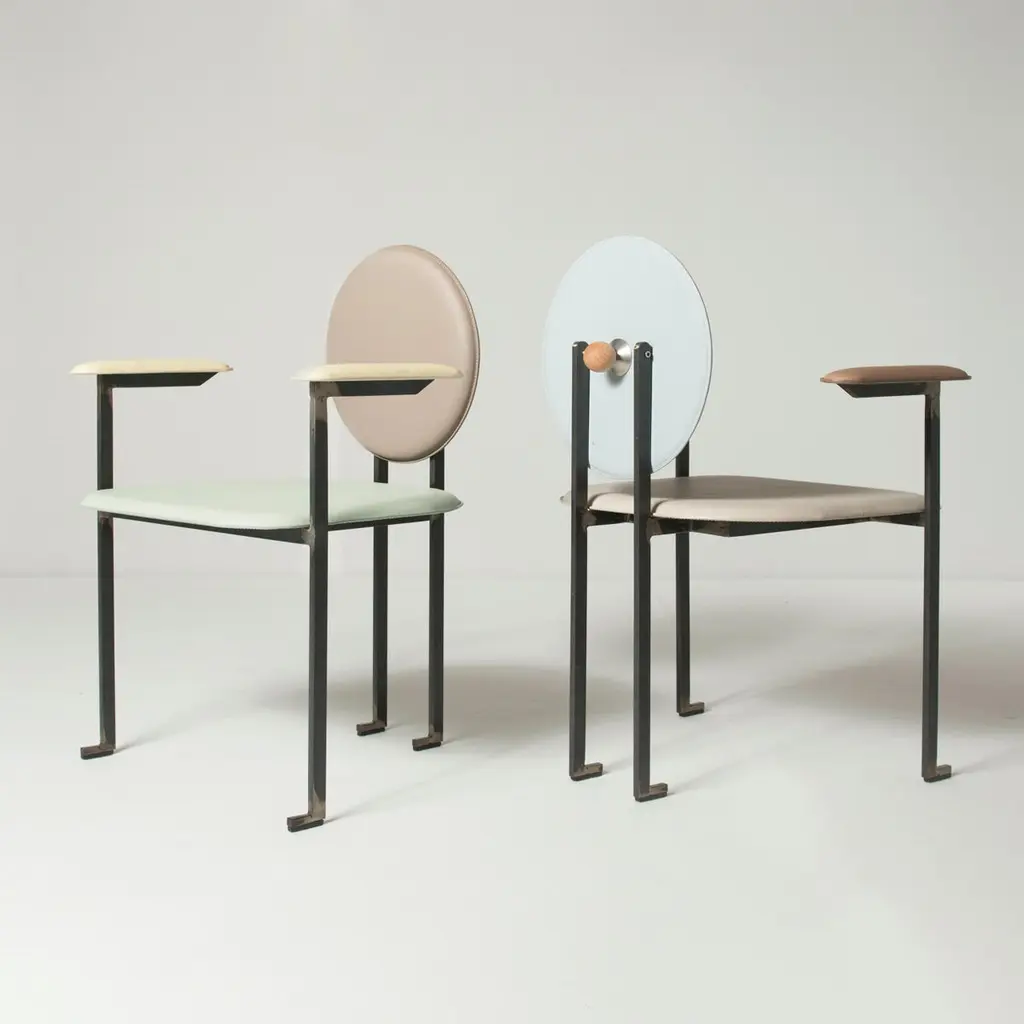 The mm3 is an armchair where the tilting backrest invites a constant interaction with the chair, providing an active way of sitting that promotes a mindful physical presence.Thanks to the proportions it can be used both as a dining table or desk as well as in a lounge layout. The sphere on the back works as a handle to move the chair easily. The frame is hand welded iron while the cushions are upholstered from handcrafted leather.All the pieces of the collection are handmade by artisans in the Milan area of Italy in respect of the local craftsmanship tradition.