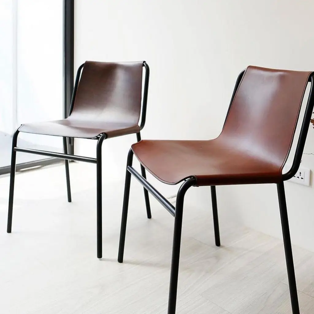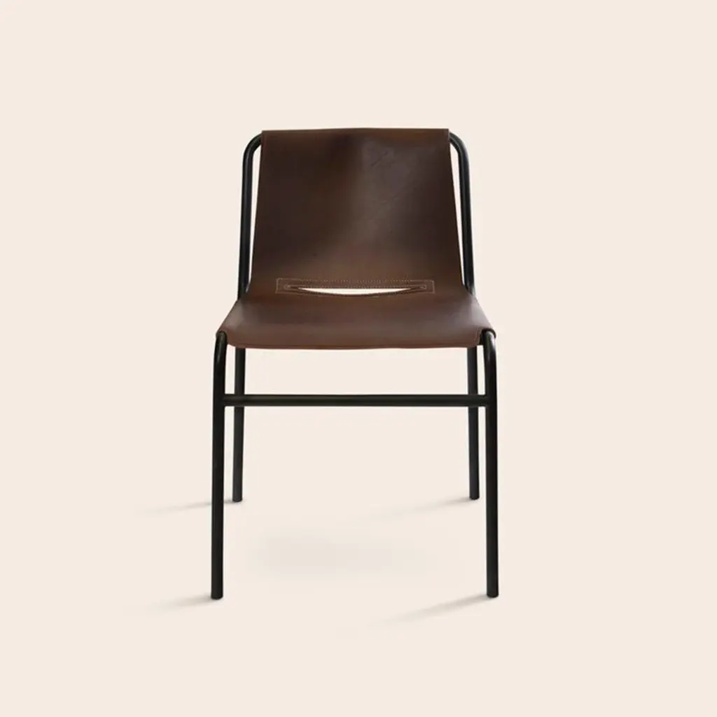 Mocca September Dining Chair by OxDenmarqDimensions: D 54 x W 48 x H 80 cmMaterials: Leather, Black Powder Coated SteelAlso Available: Different colors available,OX DENMARQ is a Danish design brand aspiring to make beautiful handmade furniture, accessories and lighting in natural high-quality materials in fair prices. " When we set out back in 2003, we were primarily working with vegetable-tanned saddle leather thus the name OX was a tribute to our unique leather and the animal providing it.The other half of our name, DENMARQ, is chosen to emphasize that we are a Danish design brand based on the Danish design tradition and that most of our furniture is produced in Denmark. However, DENMARQ not only refers to our home country, but also to the co-founder and designer - DENnis MARQuart.Before finishing his design studies at the Copenhagen Design University, Dennis Marquart did a Blacksmith education. This background is extremely useful when developing and designing products."OX DENMARQ handmade products will only get more beautiful as time passes and natural patina sets in.Many OX products are shaped around marble or vegetable-tanned saddle leather. Stone and leather are materials that will, and should, get marks over time. But they will also age with a very special beauty. When you learn to appreciate the beauty of maturity and of time passing, you have learned to appreciate patina the way it should be appreciated.