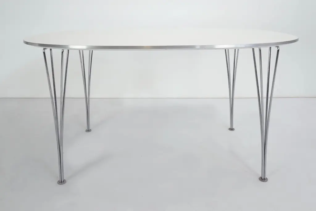 Also available an Elliptical table designed by Piet Hein, Bruno Mathsson, and Arne Jacobsen for Fritz Hansen. This piece has an attribution mark, I am sure that it is completely authentic and take full responsibility for any authenticity issues arising from misattribution