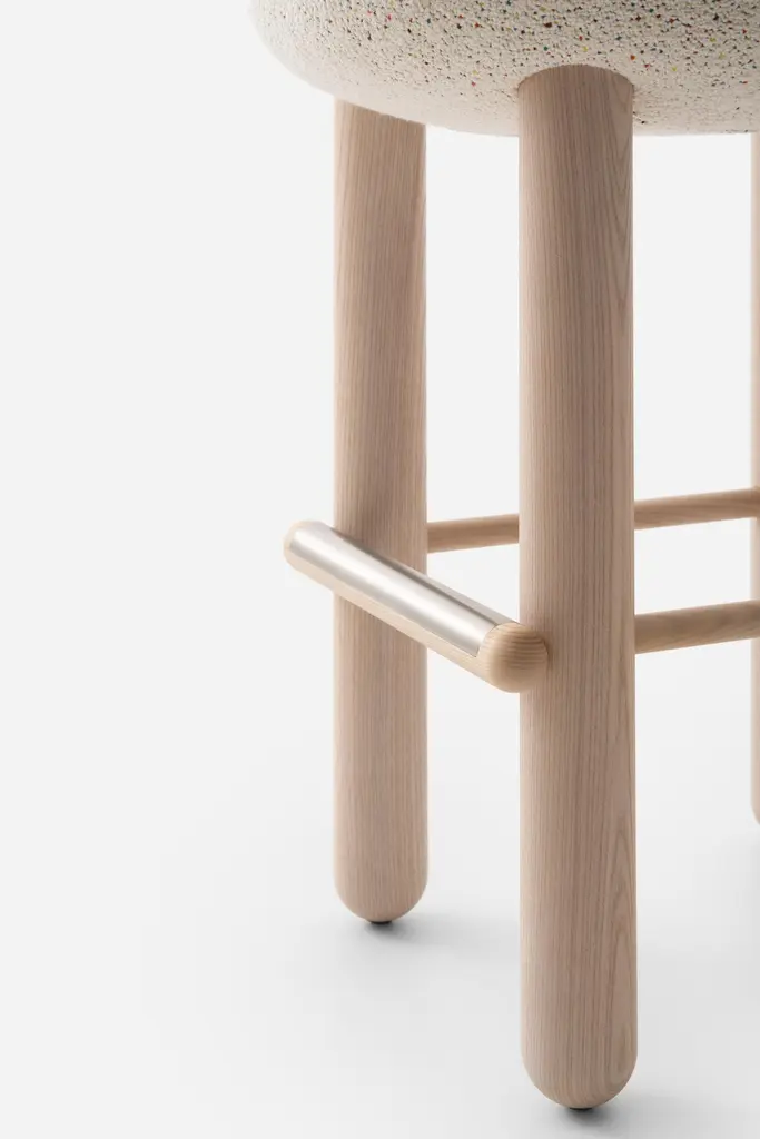 Modern Bar Chair Flock Cs2 / 75 Cm With Wooden Legs In Carnival Boucle By Noom