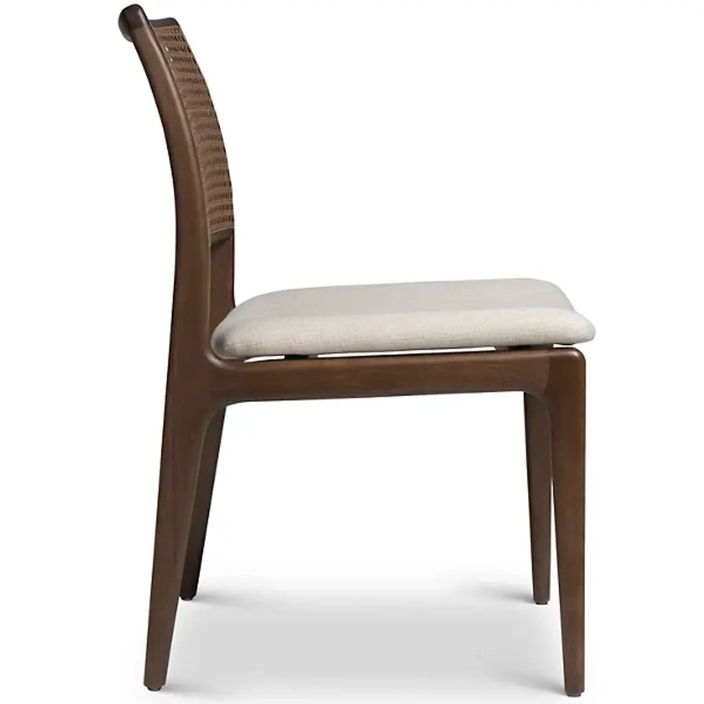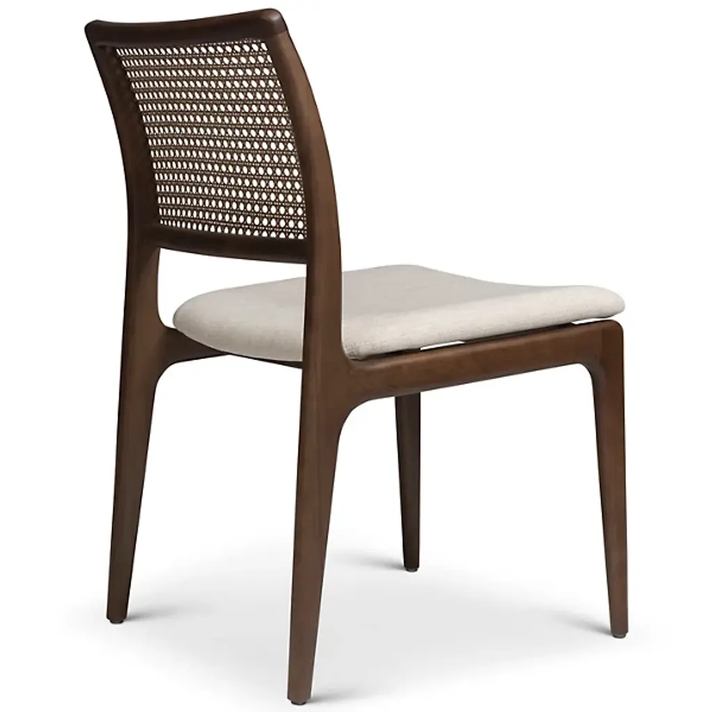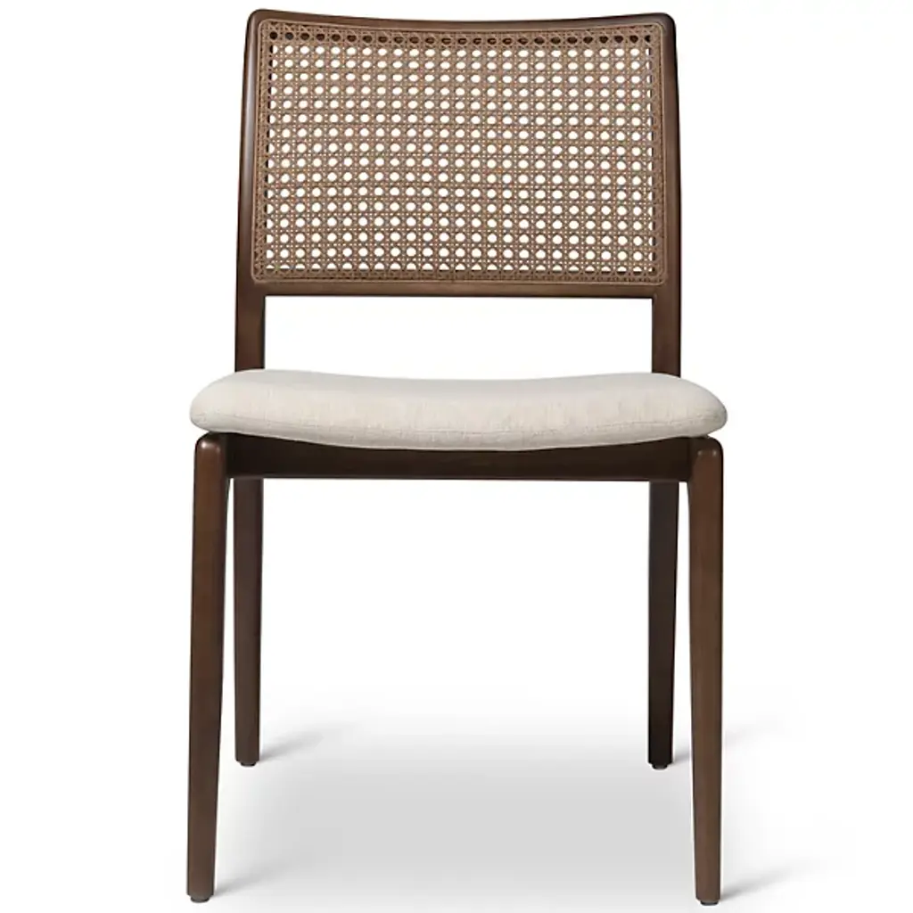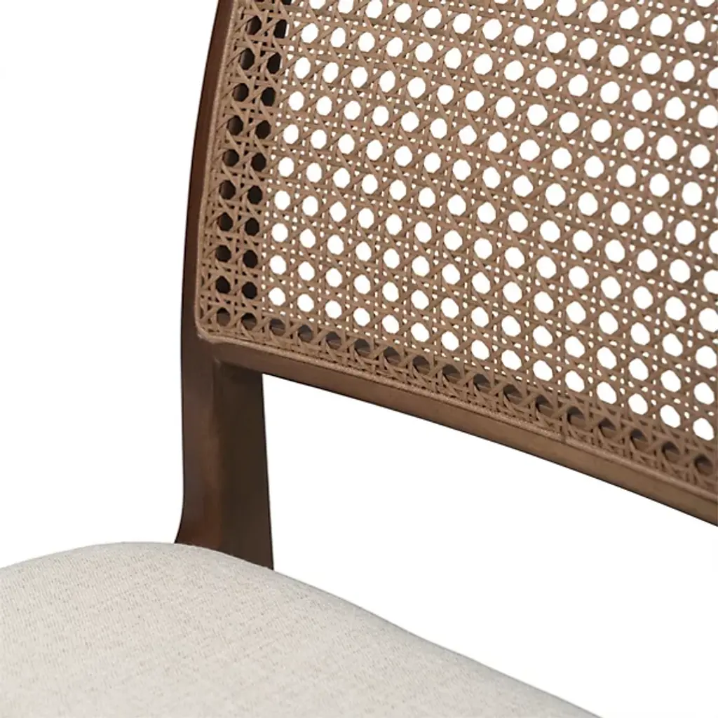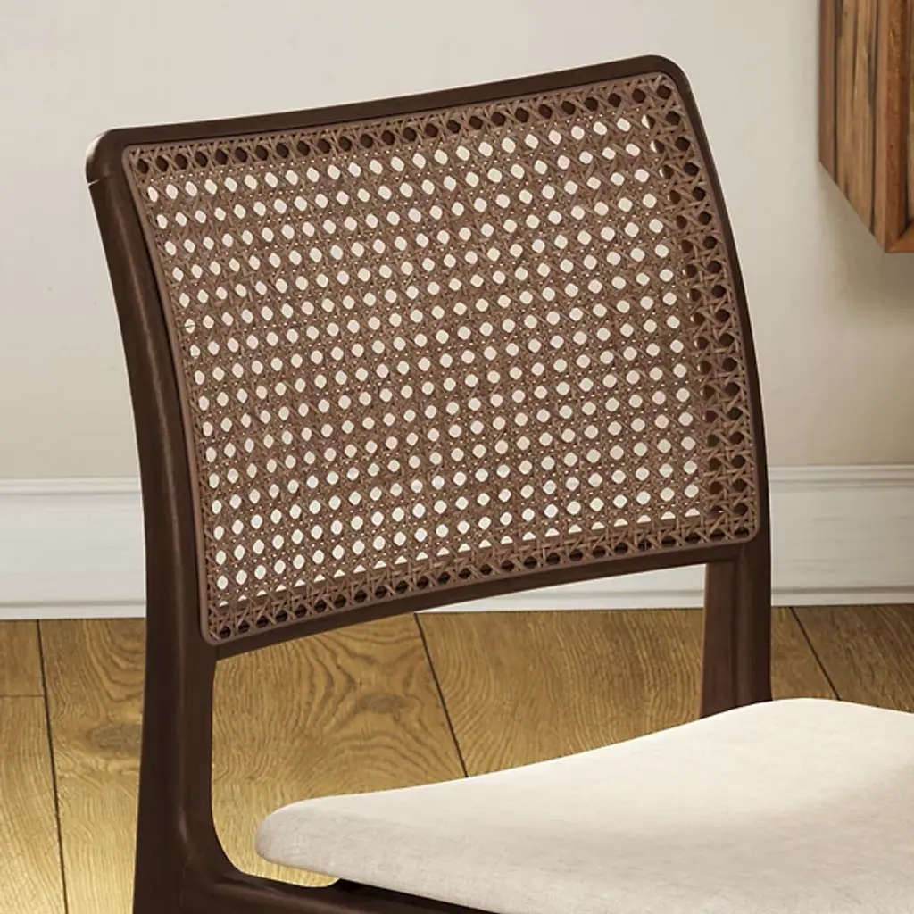 The Urbia Modern Brazilian Charlotte Cane Side Chair combines a modern aesthetic with enhanced comfort to complement your space and keep your dinner guests comfortable. This dining chair features a solid Tauari wood frame and legs with rounded corners for a strong yet delicate look, hexagonal weave cane webbing on the back, and an upholstered seat. The contemporary design of the chair allows you to place it wherever you like - in your dining area, living room, or office space.
