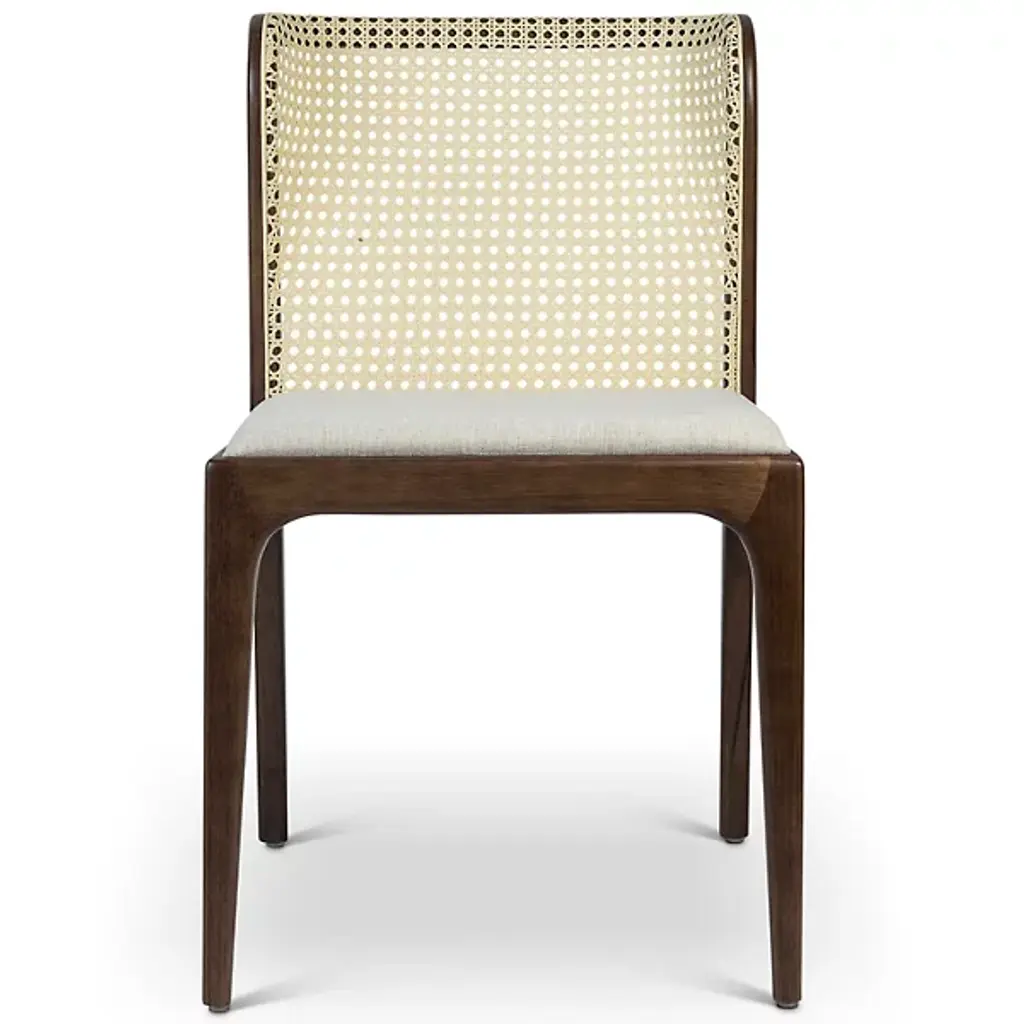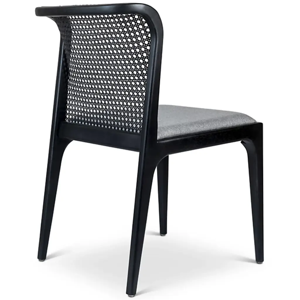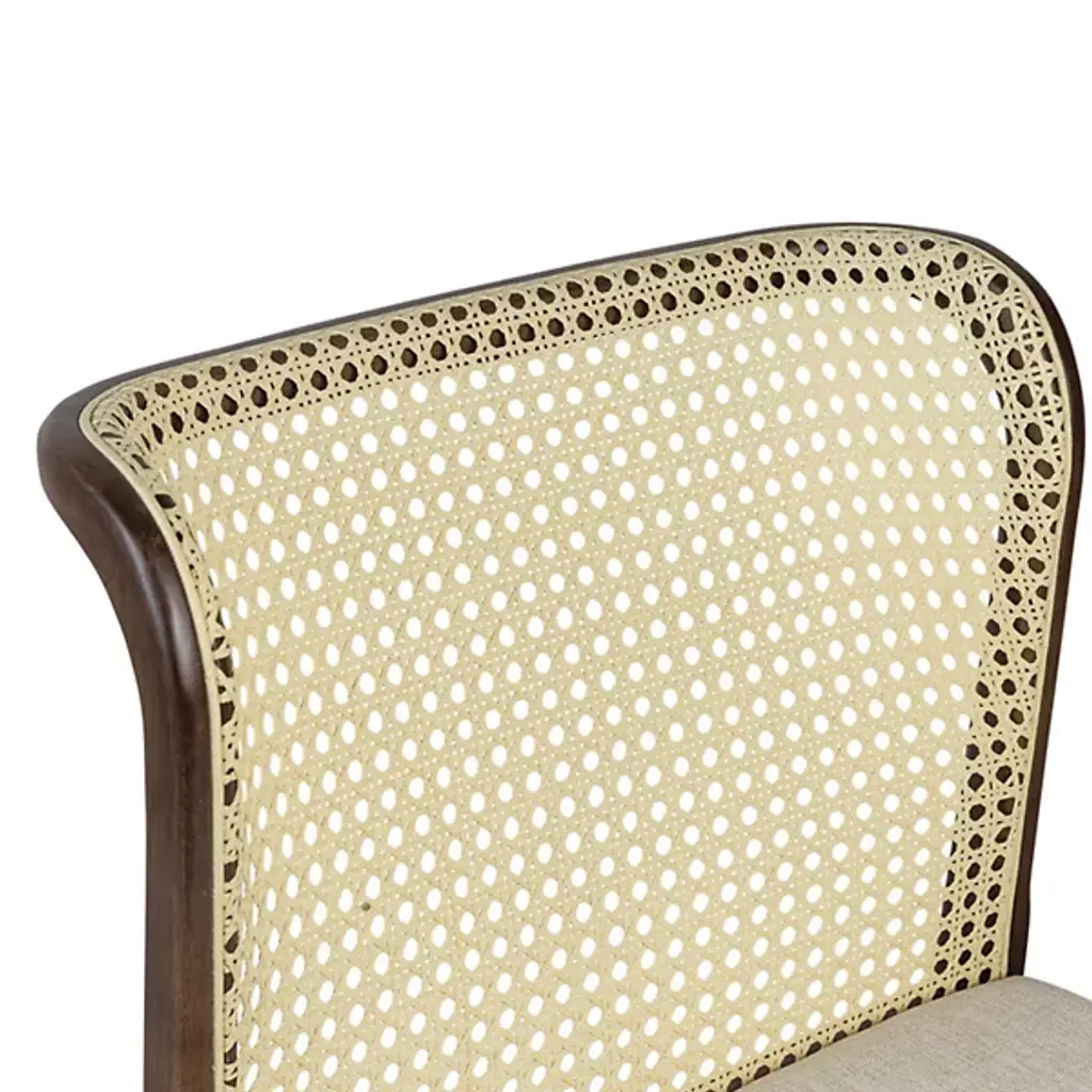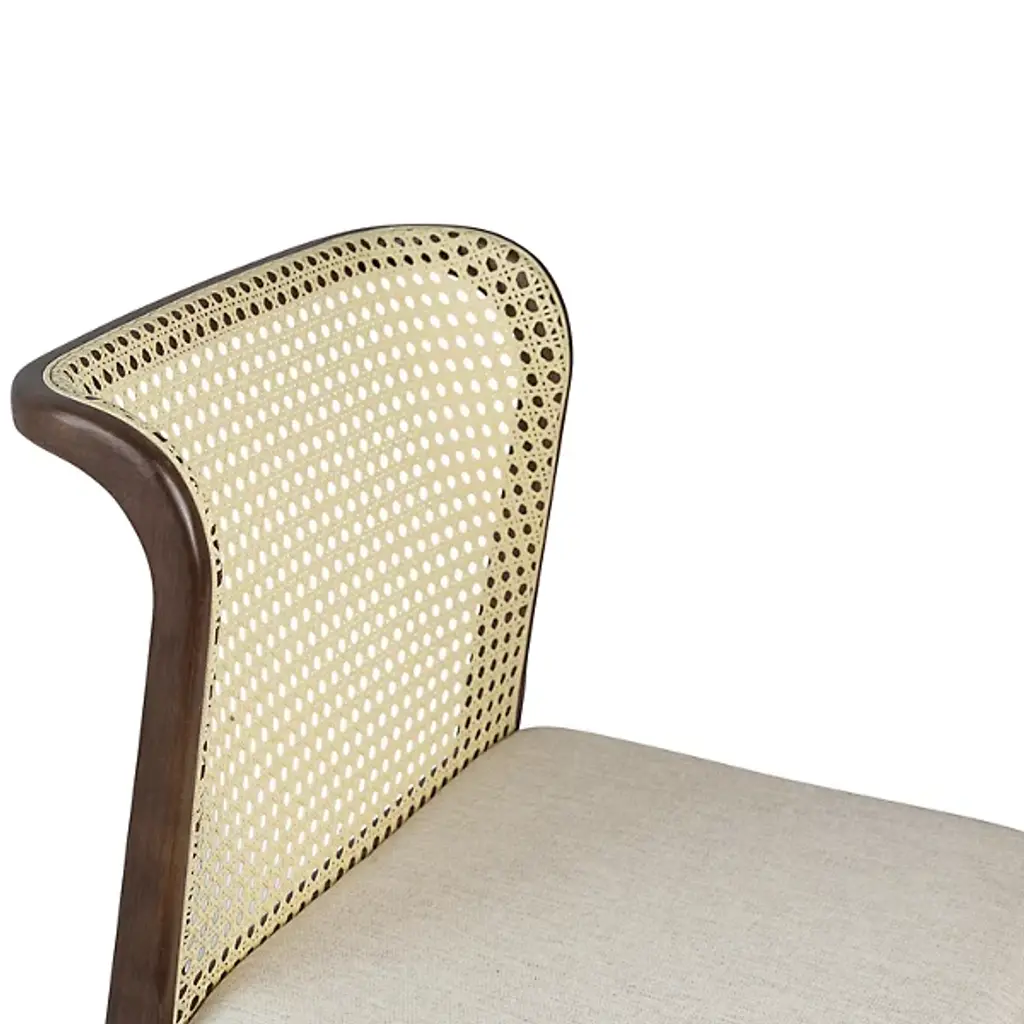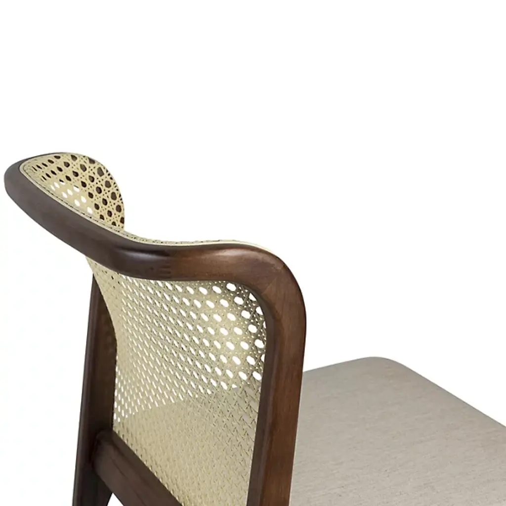 Meeting your comfort and style needs, the Urbia Modern Brazilian Eloa Cane Side Chair is made with durable materials and designed with simple elegance in mind. This dining chair has a sturdy frame made from solid Tauari wood, a curved natural cane back with intricate hexagonal weave cane webbing, and a comfortable upholstered seat. Place this chair at your dining table, in a study, or in your living room for extra seating.