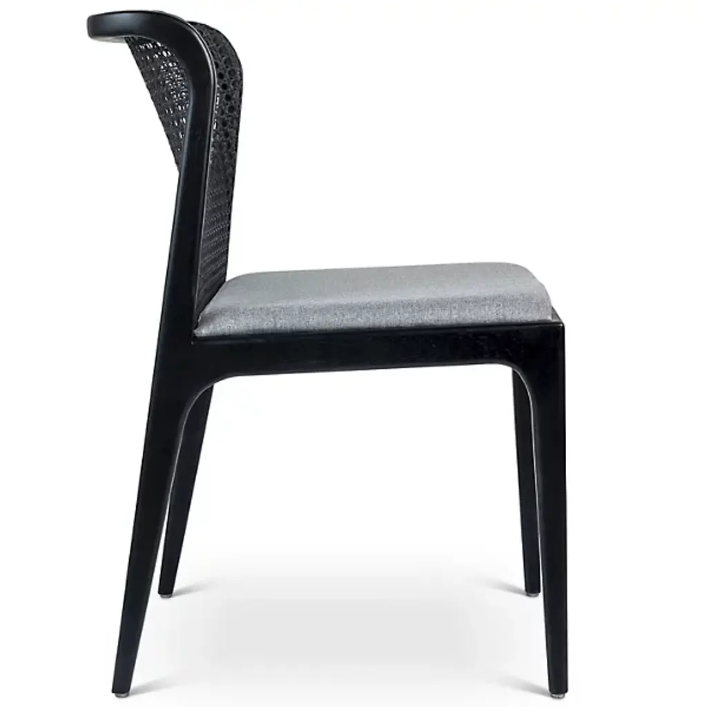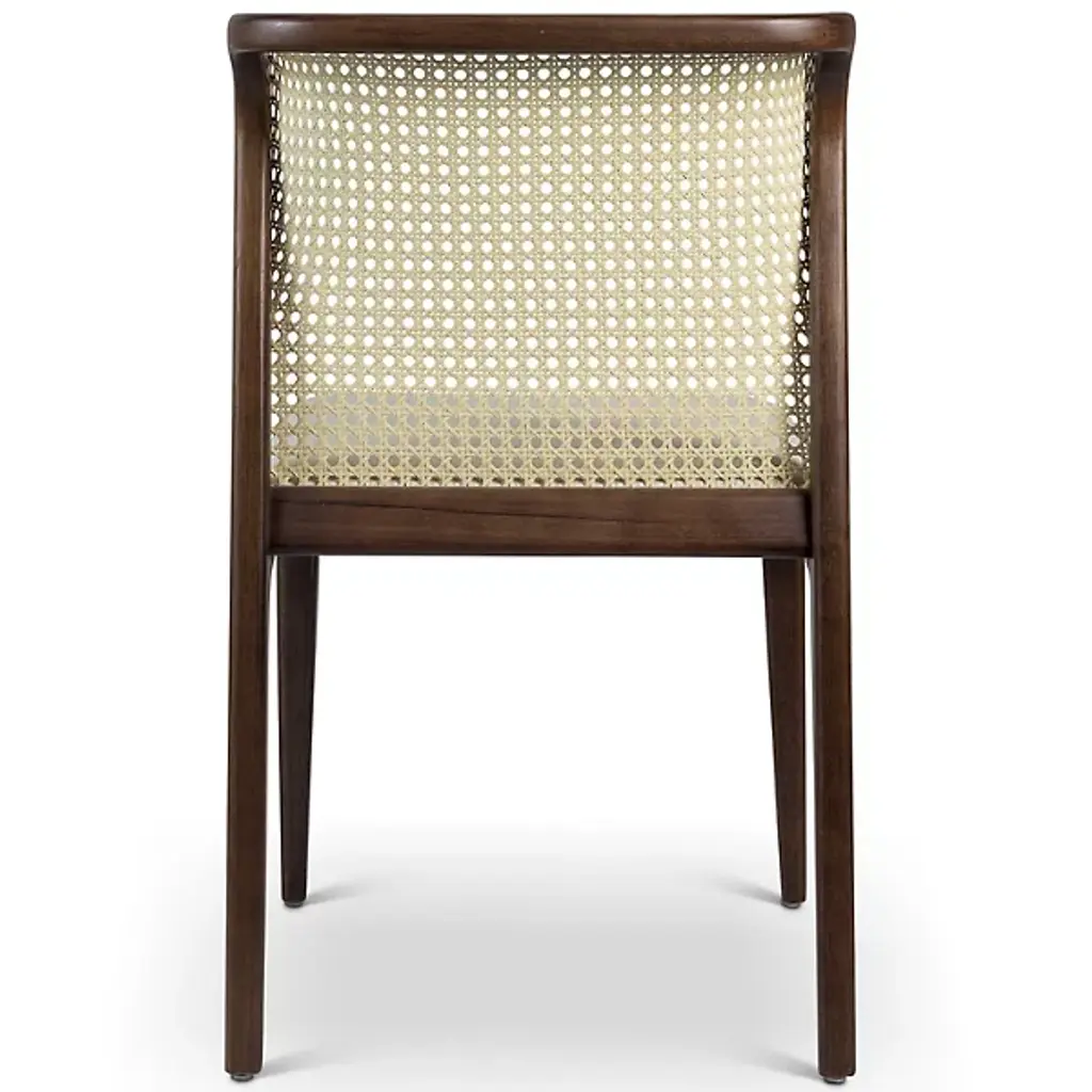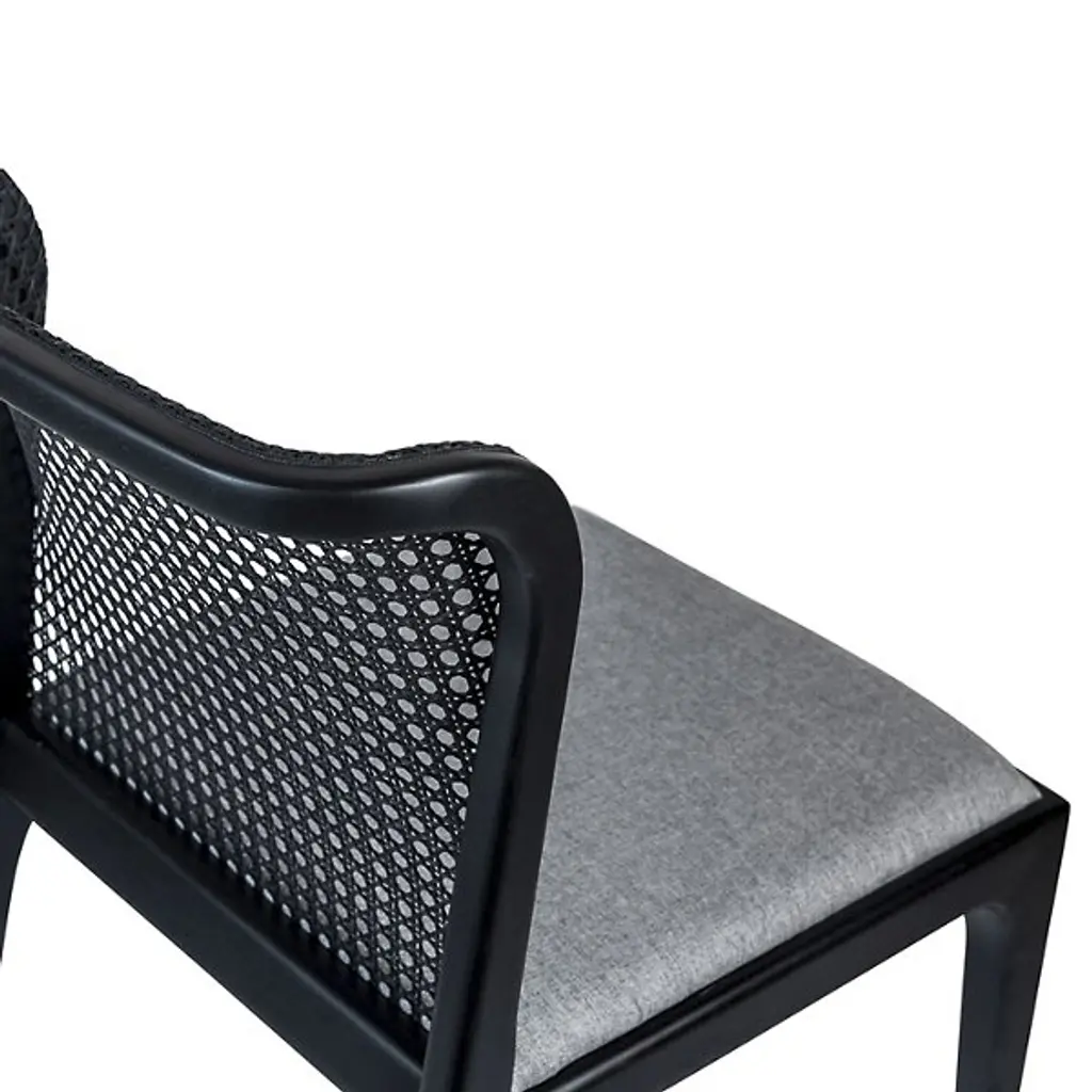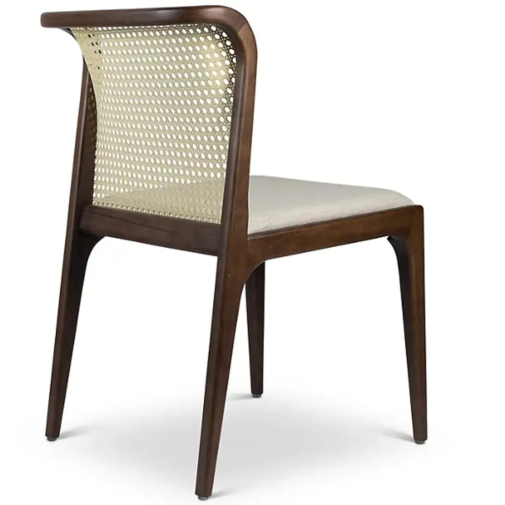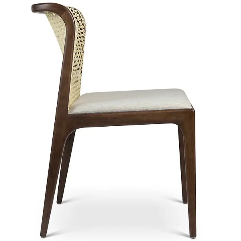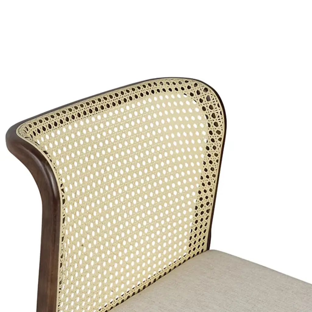 Meeting your comfort and style needs, the Urbia Modern Brazilian Eloa Cane Side Chair is made with durable materials and designed with simple elegance in mind. This dining chair has a sturdy frame made from solid Tauari wood, a curved natural cane back with intricate hexagonal weave cane webbing, and a comfortable upholstered seat. Place this chair at your dining table, in a study, or in your living room for extra seating.