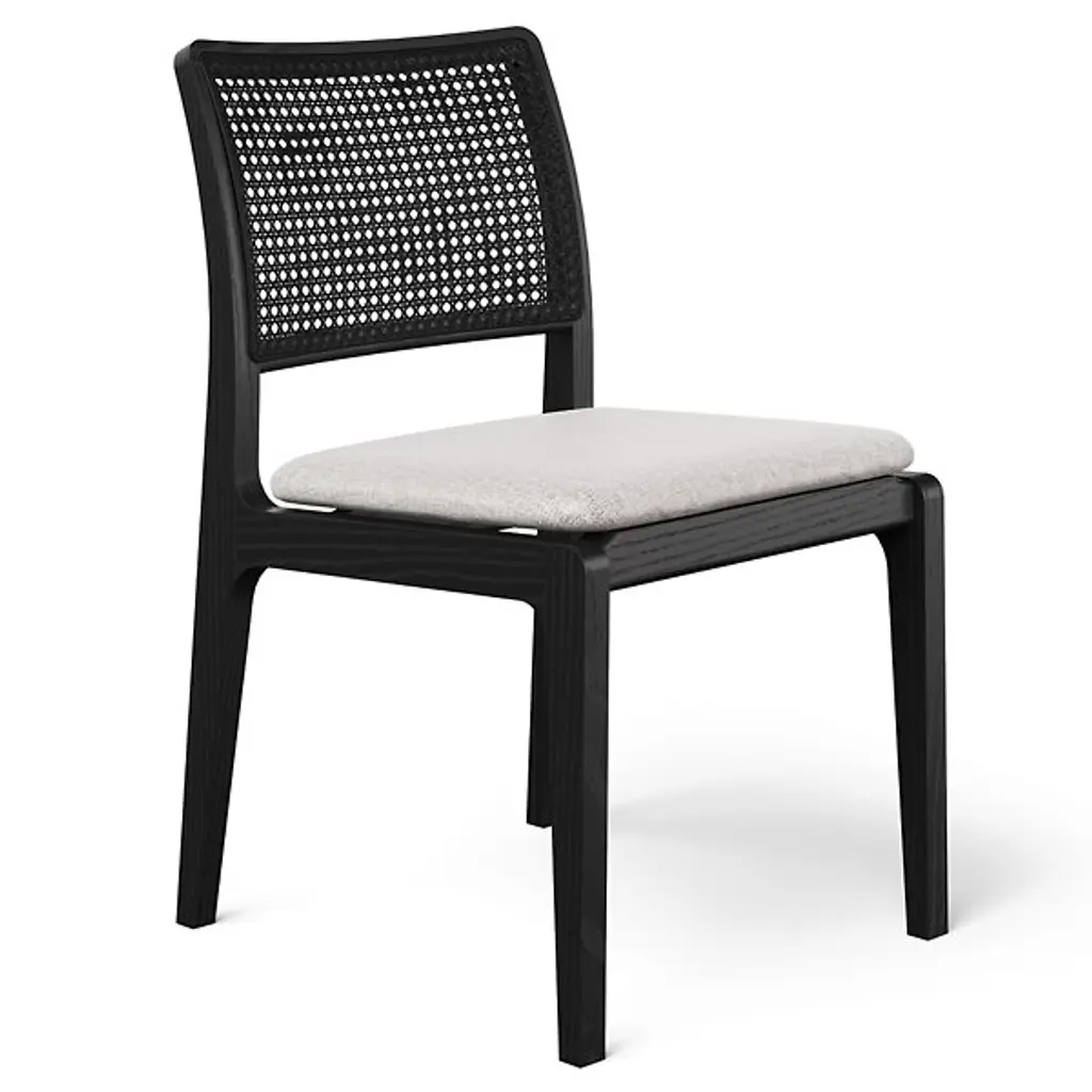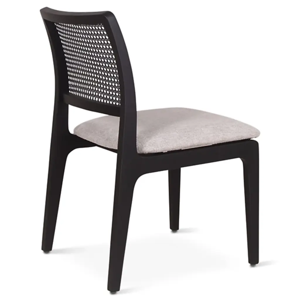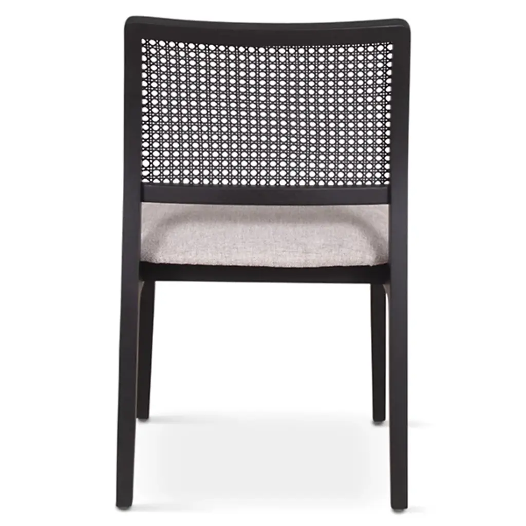 The Modern Brazilian Larissa Side Chair from Urbia embodies timeless style and elegant simplicity suitable for various interiors. Crafted with clean-lined furniture design, these chairs showcase a pressed cane back, adding a touch of retro aesthetic to your space. The generous upholstered seat ensures comfort while blending seamlessly into any room, be it a dining room, living room, or entryway. Enjoy the perfect blend of classic appeal and modern design with these stylish side chairs.