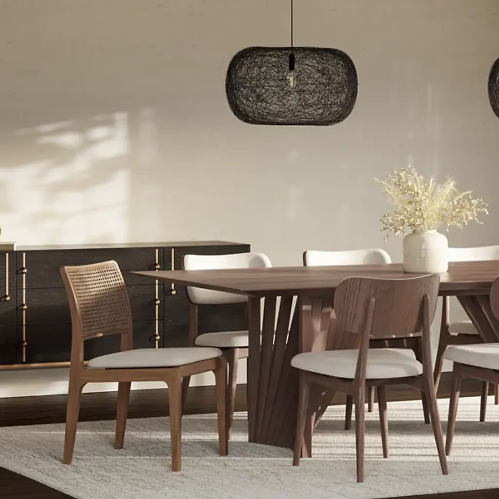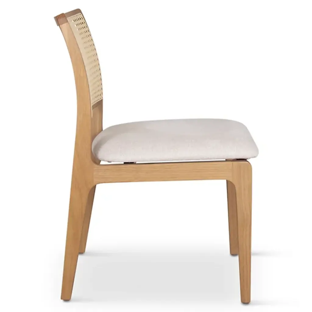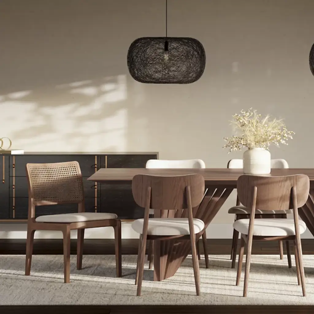 The Modern Brazilian Larissa Side Chair from Urbia embodies timeless style and elegant simplicity suitable for various interiors. Crafted with clean-lined furniture design, these chairs showcase a pressed cane back, adding a touch of retro aesthetic to your space. The generous upholstered seat ensures comfort while blending seamlessly into any room, be it a dining room, living room, or entryway. Enjoy the perfect blend of classic appeal and modern design with these stylish side chairs.
