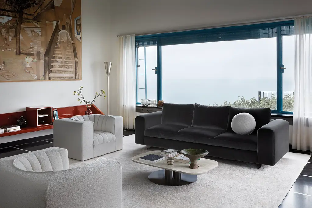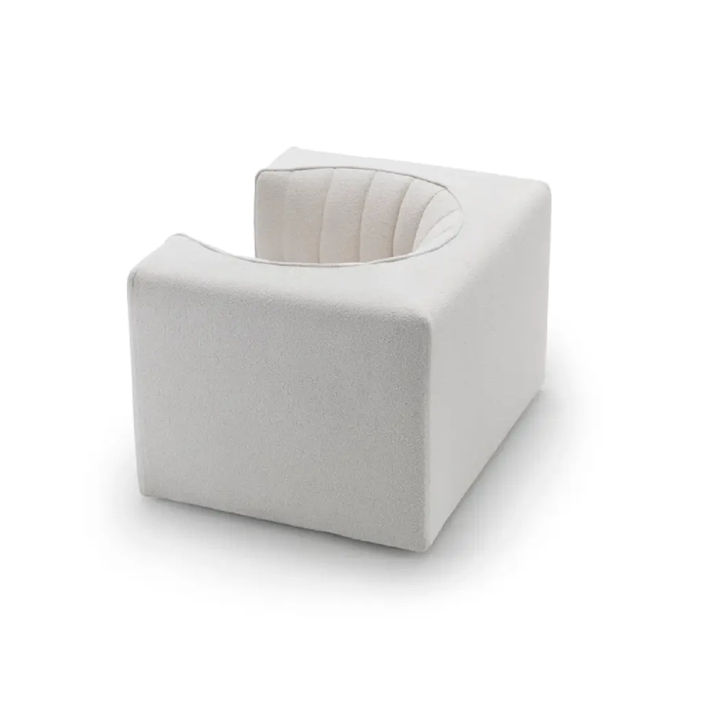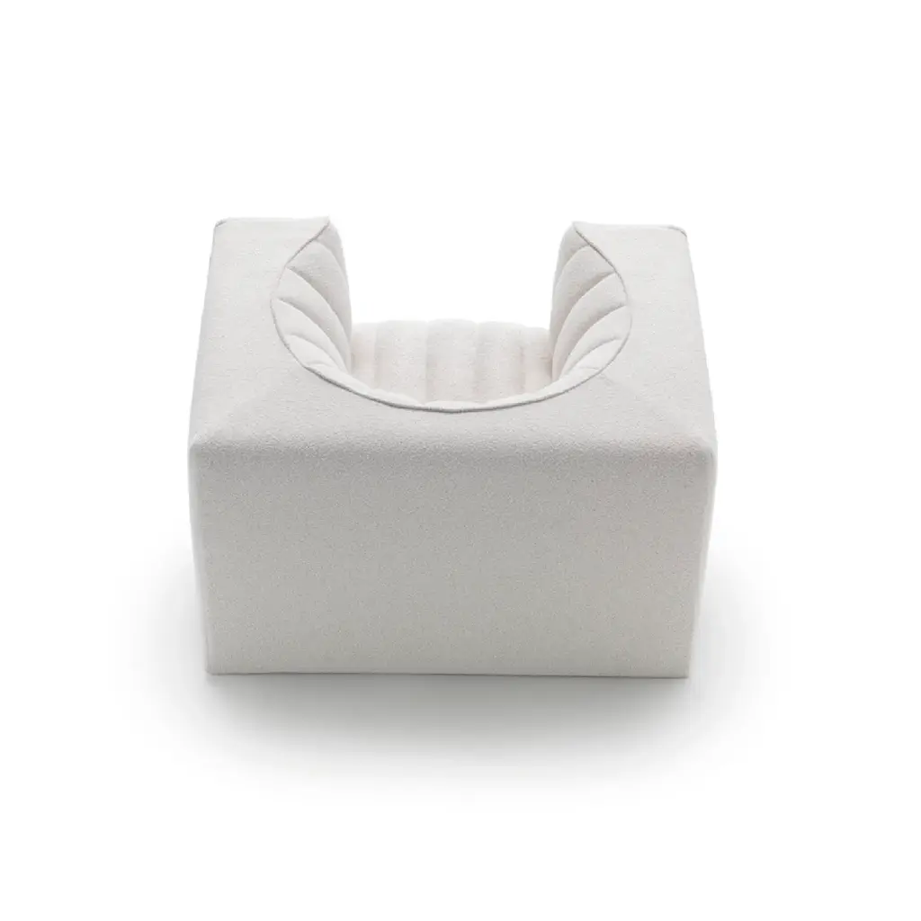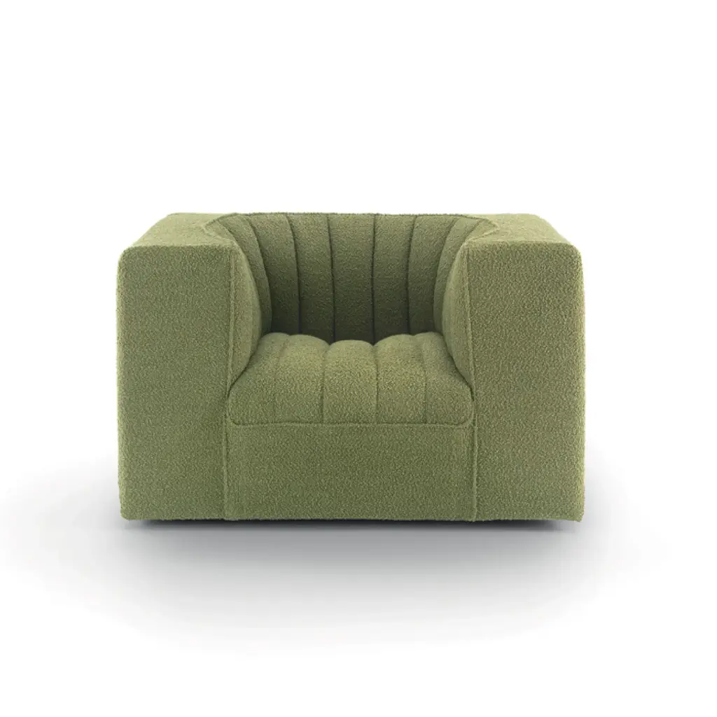 Introducing the Modern Channeled Armchair by Arflex 9000. With its sleek and contemporary design, this compact and versatile armchair is perfect for any space from elegant homes to luxurious hotels. Its rounded shape and channeled details offer comfort and a touch of sophistication to any seating arrangement.