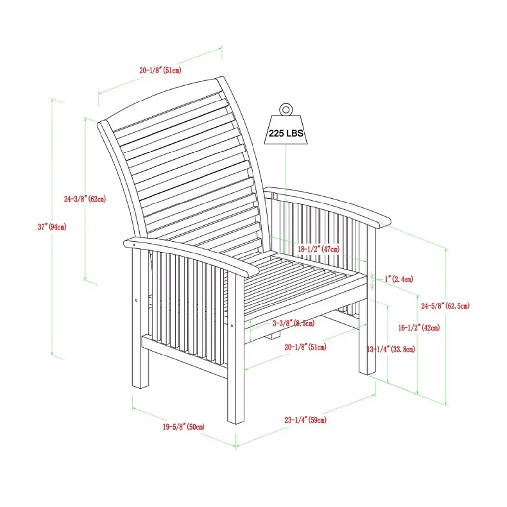 Modern transitional style Attractive chevron design on backrest and seat Made from solid acacia wood Comfortable contoured seats Includes 2 patio chairs Pair with the matching outdoor dining table for a complete set Easy assembly is required Occasionally apply teak oil to keep wood vibrant