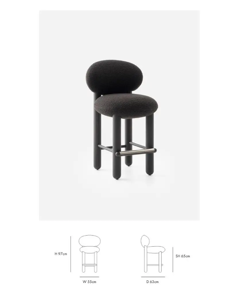 The design bar chair Flock is not just a modern chair; it's a masterpiece that seamlessly blends timeless elegance with comfort and meticulous craftsmanship. This bar-height chair features a deep, soft seat and a curved supportive back, making it a striking accent chair for private and commercial interiors. With a wide selection of premium fabrics and customizable wooden or upholstered legs, the Flock counter stool with back is designed to complement any space. Flock bar chairs are an extension of the brand's existing Flock collection, which previously featured lounge chairs with ottomans and dining chairs.Designer: Kateryna SokolovaMaterials: ashwood, plywood, metal, molded foam, textileColor Scheme: CS2 - upholstered with wooden legsDimensions: H 97 cm, W 55 cm, D 63 cm seat height 65 cmLead Time: 2 months