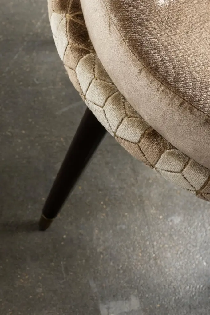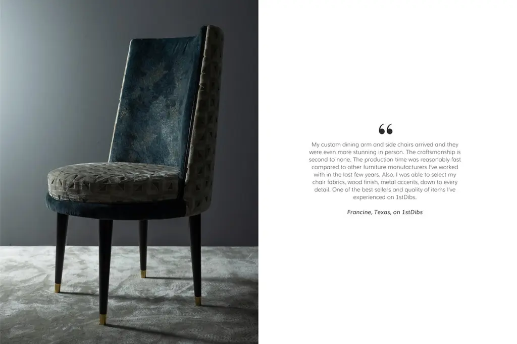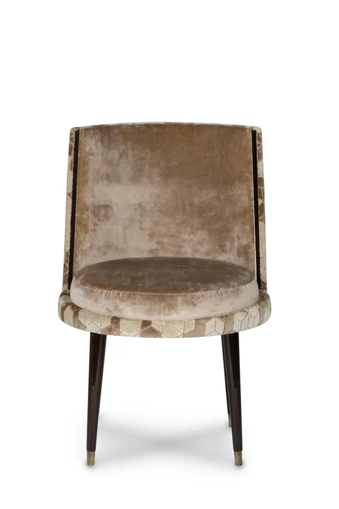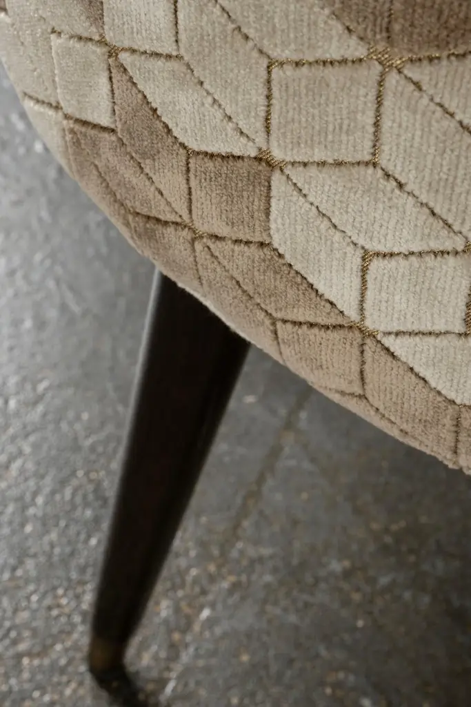 De Castro Chair, Modern Collection, Handcrafted in Portugal - Europe by GF Modern.The De Castro dining chair is a tribute to one of the most remarkable Portuguese love stories, celebrating the serenity and delicacy of Inês de Castro. Upholstered in sumptuous fabrics, De Castro effortlessly graces the dining room interior, emerging as a sophisticated dining chair with a romantic allure.De Castro Chair Material CodesWD066 Beech; dark brown stained; high-gloss finishME007 Oxidised brass; high-gloss finishM100397 Camel velvetM100804 Brown/beige jacquard geometric-patterned velvetHandcrafted in Portugal - Europe by GreenappleUnique by design, Crafted by peopleFounded in 2005 by Sérgio Rebola and Rute Martins, Greenapple designs and produces in-house luxury furniture for exclusive customers worldwide.Our own in-house production facility allows us to be obsessed with detail, and gives us the freedom to dedicate ourselves to the most demanding tailor-made and customized work. As Rute designs all the unique pieces, Sérgio assures the high-quality standards through the whole process - from design to production; from production to your home. Fine craftsmanship, whether perfected by experienced hands or state-of-the-art machinery is quintessential in delivering top quality experiences.
