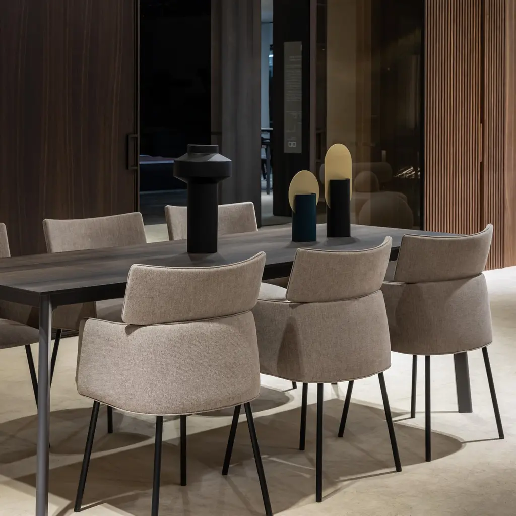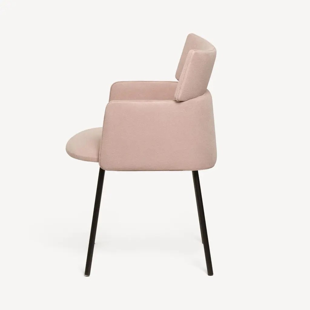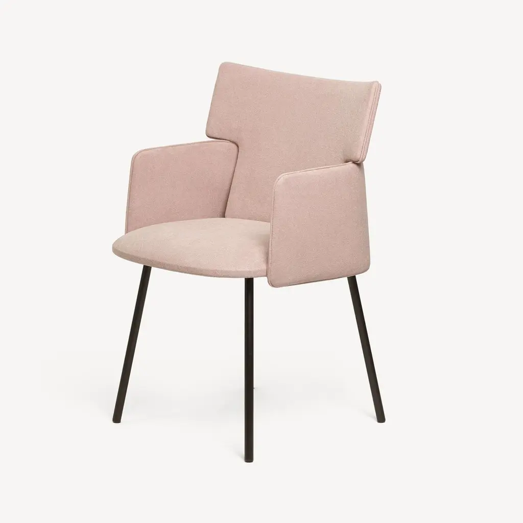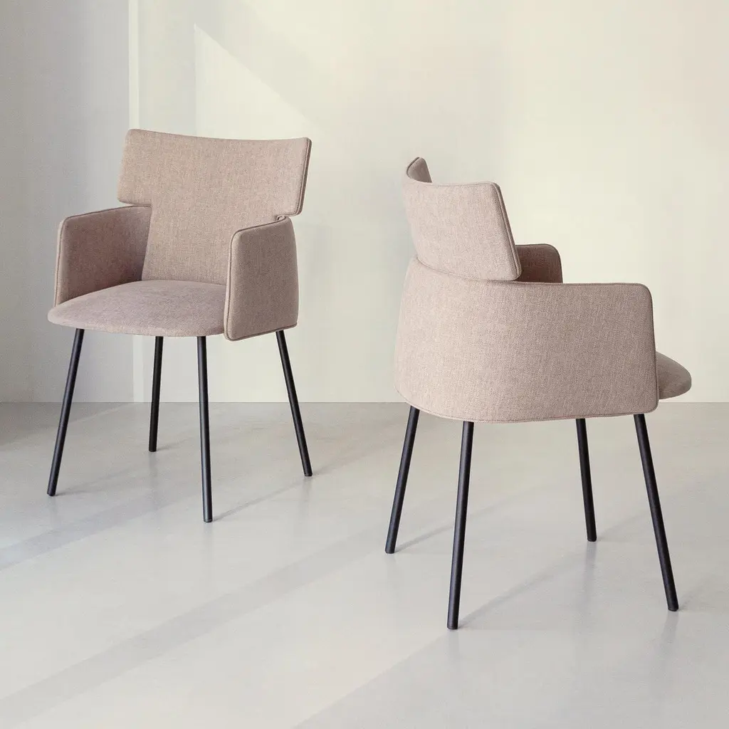 Motto Dining Chair with Armrests – Modern Elegance and Personalized ComfortElevate your space with the Motto Dining Chair with Armrests, a perfect balance of modern elegance and everyday functionality. Featuring a striking T-shaped backrest and smoothly curved armrests, this chair offers a contemporary design that complements both residential and commercial interiors.Designed for comfort and versatility, the Motto chair is upholstered in soft, premium materials, with a wide selection of customizable colors to suit any interior style. Whether for dining rooms, kitchens, offices, or hospitality settings, this chair delivers both style and ergonomic support.Why Choose the Motto Chair?Distinctive Design: A signature T-shaped backrest and sleek armrests for a modern aesthetic.Exceptional Comfort: Ergonomically designed for long-lasting seating comfort.Customizable Upholstery: Available in an extensive range of colors to match any decor.Versatile Applications: Ideal for homes, restaurants, cafes, offices, and showrooms.Designed by Dmitriy Kozinenko, the Motto chair embodies timeless design and top-tier craftsmanship, making it a versatile and stylish choice for any interior setting.
