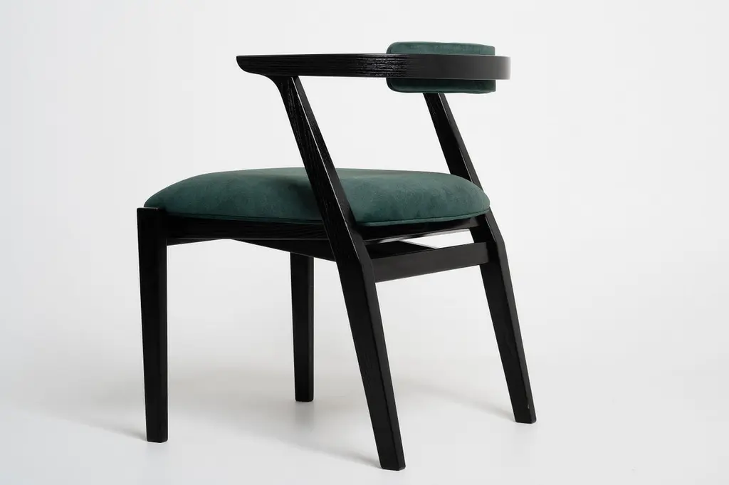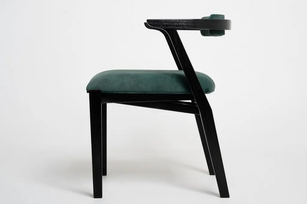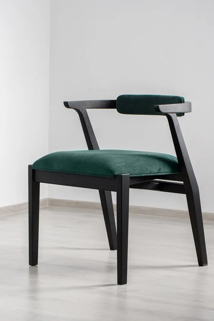 Modern Dining Room Chairs In Black Solid Wood And Emerald Material