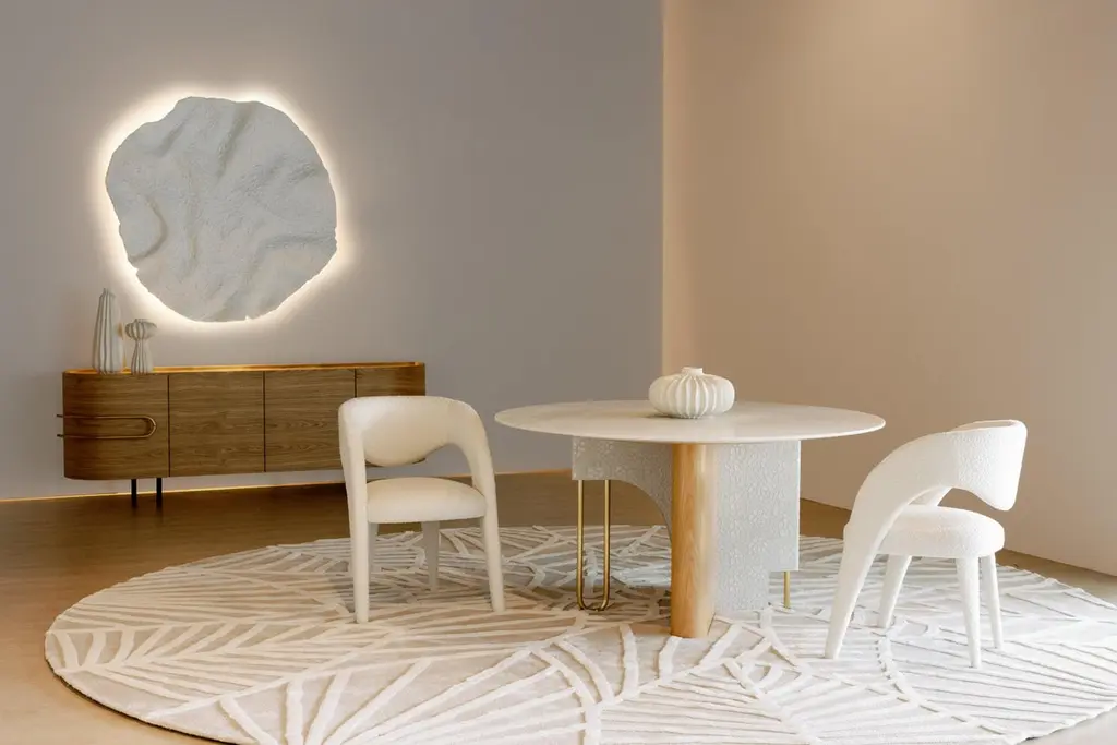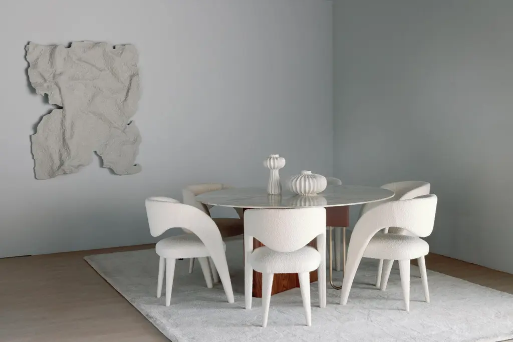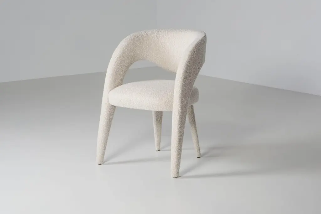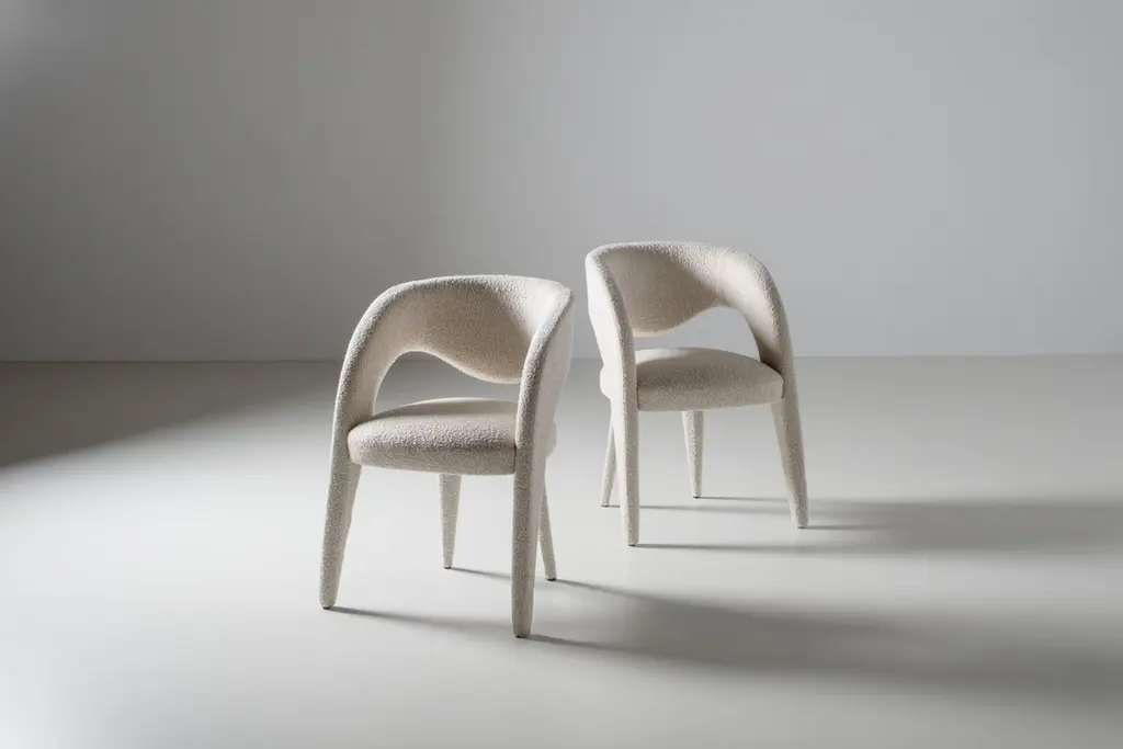 Modern Laurence Dining Chairs, Cream Bouclé, Handmade Greenapple