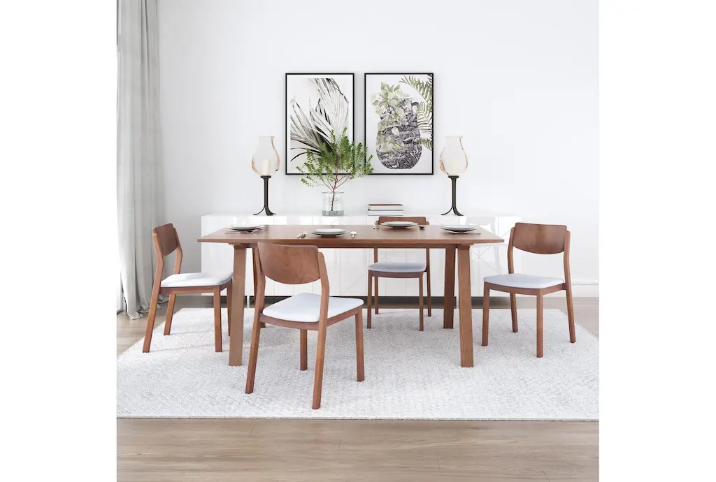 Modern Light Grey And Walnut Contract Grade Dining Chair