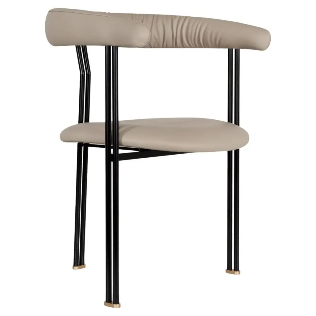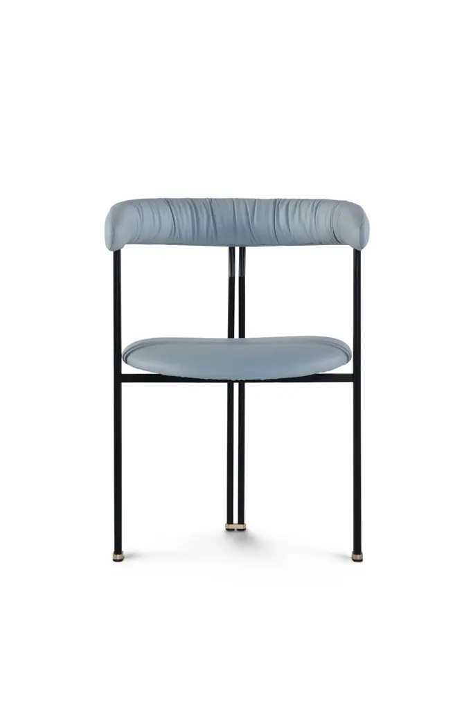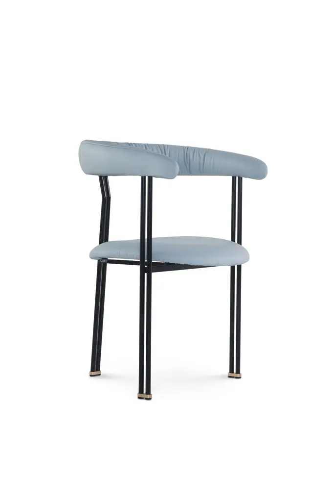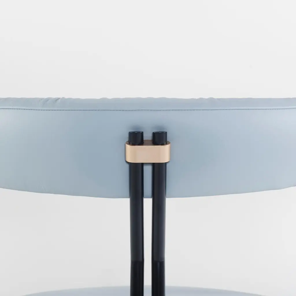 Maia Chairs, Contemporary Collection, Handcrafted in Portugal - Europe by Greenapple.The Maia leather dining chair takes its name from the novel Maias, a compelling tale of feuds and love affairs spanning three generations of a Portuguese family—both serving as timeless statements that triumph over time. Designed with clean, modern lines and upholstered in premium leather, Maia combines contemporary aesthetics with unparalleled seating comfort, offering a delicate design that redefines the standards of modern living.The Maia chair features a rust-free tubular metal frame lacquered in satin black with a durable powder-coated finish and solid brass end caps in brushed and burnished antique brass with a matte varnish, making it suitable for outdoor use.The seat and backrest are upholstered in light blue leather.The leather can be treated with a stain-resistant finish for added durability.The Maia chairs can be customized in terms of materials and finishes.Maia Chair Material CodesFI007 Lacquered, Black, SatinME032 Brass, Brushed, Burnished, Varnished, Antique-Brass, MatteM103887 Leather, Light BlueHandcrafted in Portugal - Europe by GreenappleUnique by design, Crafted by peopleGreenapple transforms contemporary spaces into exclusive narratives of design and craftsmanship. From custom-made furniture to bespoke interiors, each creation is a timeless work of art, shaped by master artisans who honor centuries-old techniques.Founded in 2005 by Sérgio Rebola and Rute Martins, Greenapple has earned global recognition among high-end clientele and leading design firms. While Rute designs each unique piece, Sérgio ensures uncompromising quality from design to production and from production to your home. We provide a seamless experience, offering short production lead times, worldwide delivery within 7 to 10 days, and white-glove service upon request.For U.S. clients, we can offer white-glove service as well upon request.Seat, Office Chair
