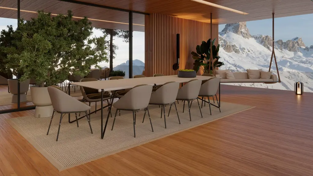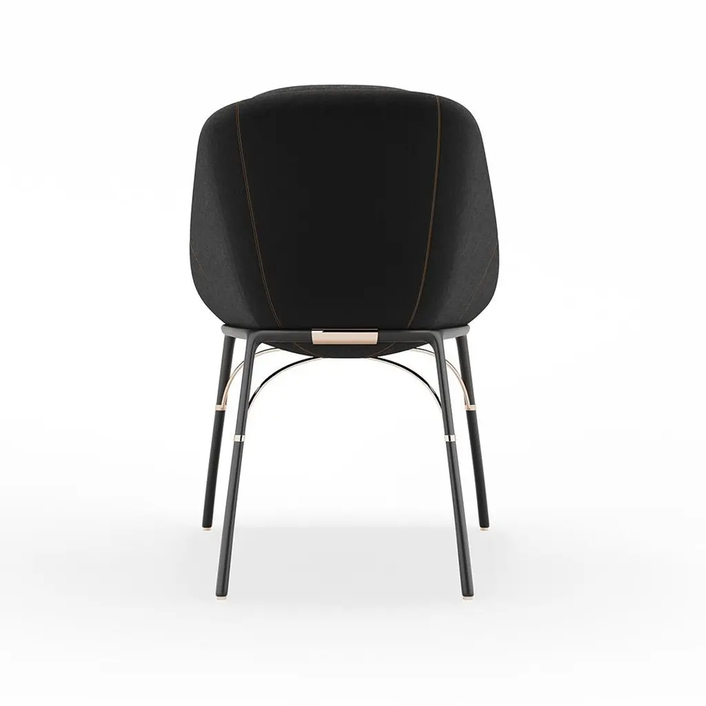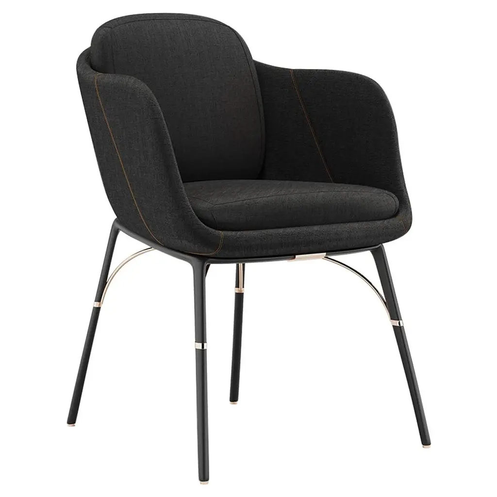 Nero - Dining chairThe Nero dining armchair embodies modern elegance, with its clean lines and sculpted form. Thoughtfully designed with refined lines and premium materials, this chair strikes the perfect balance between bold design and timeless appeal, making it a statement in outdoor dining areas.Contemporary outdoor dining chair made with structure: Legs black matte powder coated stainless steel, Metallic details in gold plated stainless steel, Upholstery: Acrylic fabric and synthetic outdoor leatherNero Collection found its appeal in the apparent contradictions - a well-formed torso and slim, elegant legs - in weather-resistant fabric and a powder-coated metal structure, providing a comfortable outdoor dining chair for any contemporary outdoor setting.