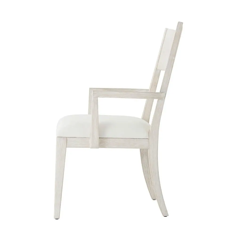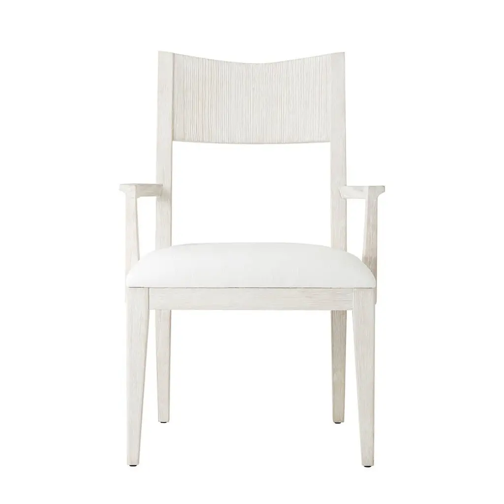 Designed with a beveled back, incredibly comfortable seat crafted from wire-brushed cerused pine in our Sea Salt finish.Dimensions: 24.75" W x 24.25" D x 38" HSeat height: 19.25"Arm Height: 24.75"Shown in Sun Bleached-UP6137 fabric