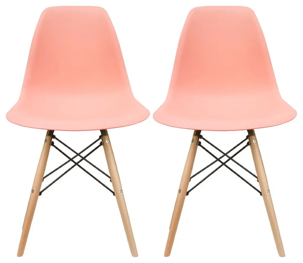 Modern Plastic Eiffel Chairs Dining Chair, Set Of 2, Pink