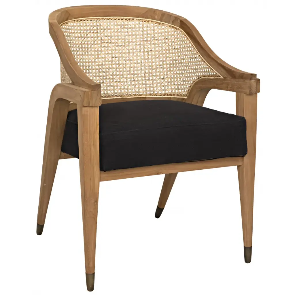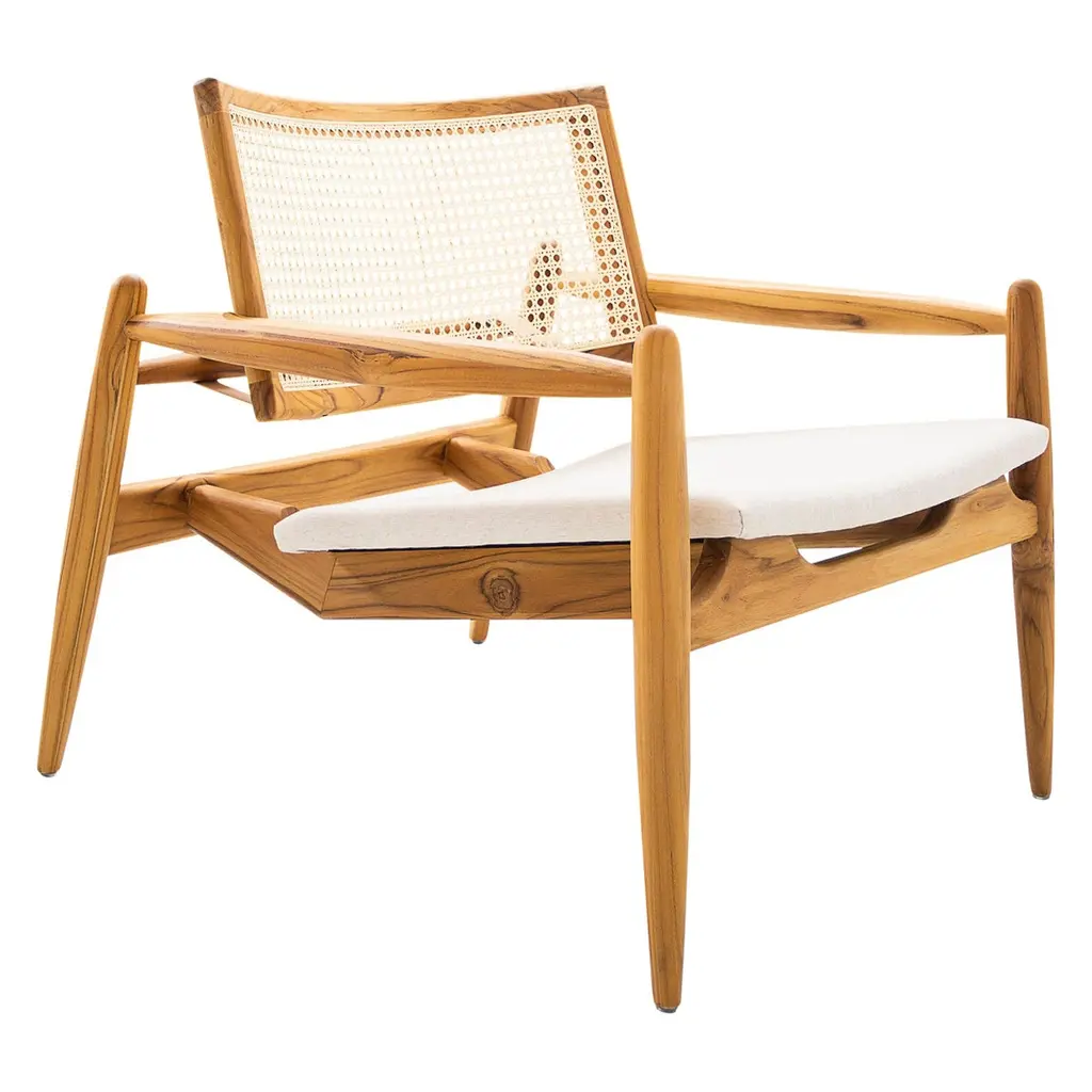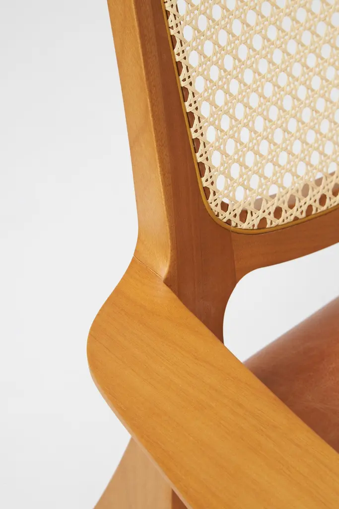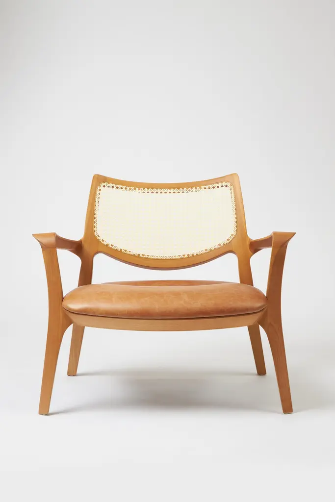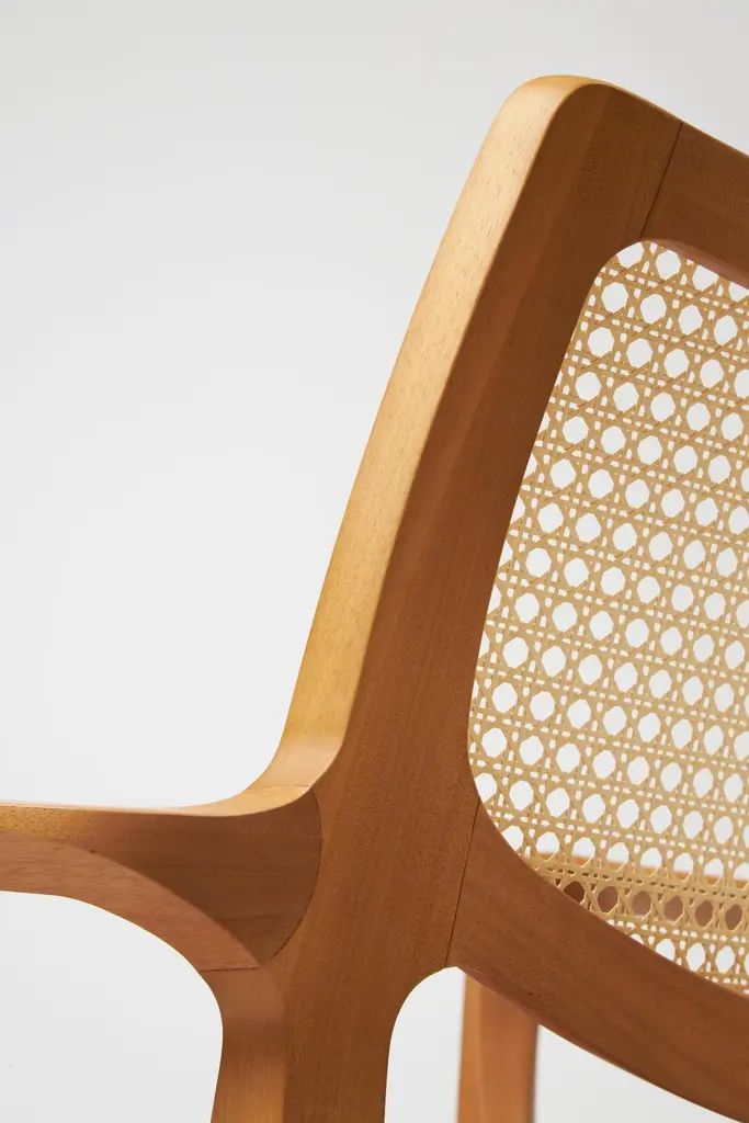 Modern Style Aurora Armchair Sculpted In Solid Wood, Caning Back, Leather Seat