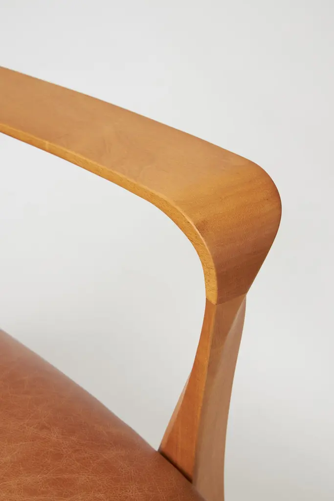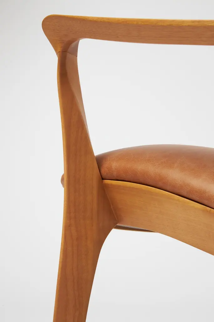 Warm and inviting, the Aurora Collection, prestigious winner of the International IF Design Award 2023 and the German Design Awards 2023, now welcomes an addition with its armchair, further enriching our universe of solutions within the line. This piece contrasts the refined beauty of our collection's chairs and stools, incorporating new elements that infuse vitality into spaces and spark fascination in every solution. Each embodies the guiding thread of the line’s overall concept as well as unique elements of each particular solution, aiming to create points of interest and variations that emanate novelty and arouse interest.Venturing into uncharted creative territories, this remarkable collection crafts a masterpiece that transcends norms, capturing a unique essence. Carved from solid wood blocks, the delicate shapes gracefully rotate along multiple axes, creating majestic contours that blend harmoniously. Each piece in the collection evokes the fluidity and grace of a ballet performance, with a desire for their movements to emanate life.A two-year journey took us from sketches to 3D prints and detailed models. This process refined our design, resulting in durable pieces that blend functionality with aesthetics. The collection transcends the norms for everyday chairs, armchairs, and stools, combining exceptional design, ergonomics, and distinctive identity. The possibilities for customization are endless, allowing for versatile co-creation for every unique and singular project.