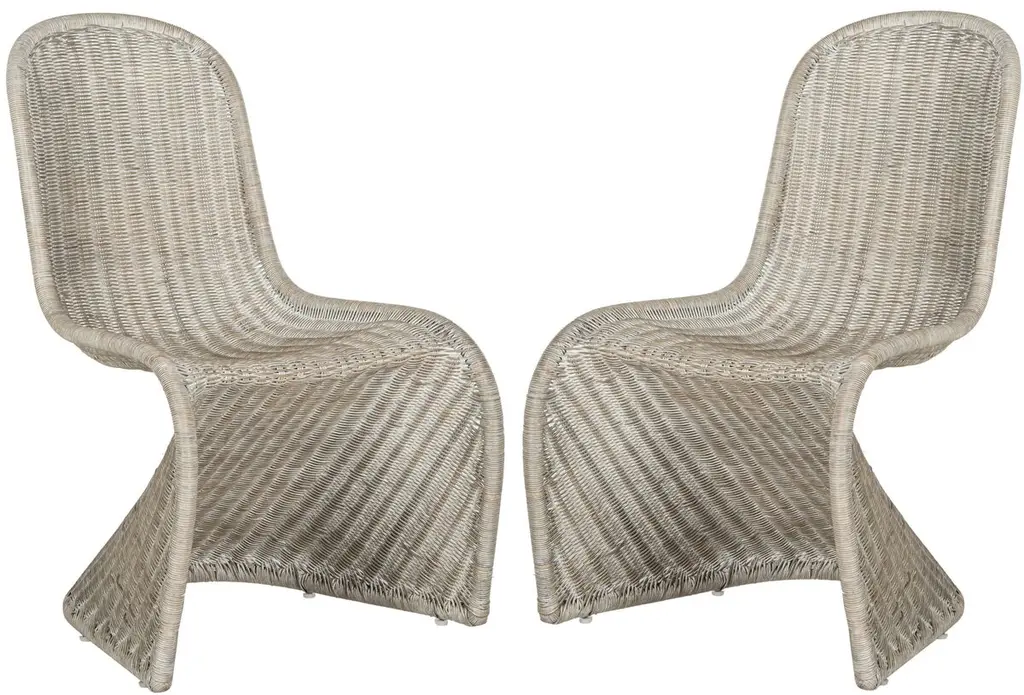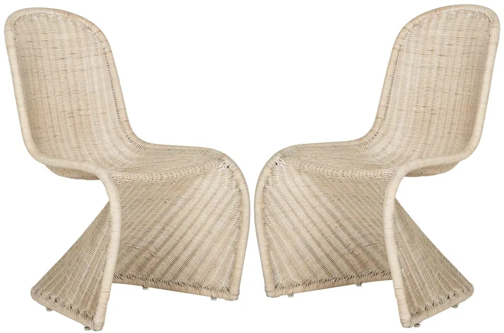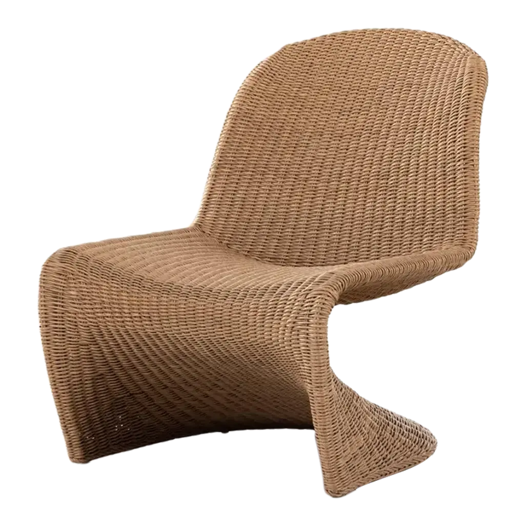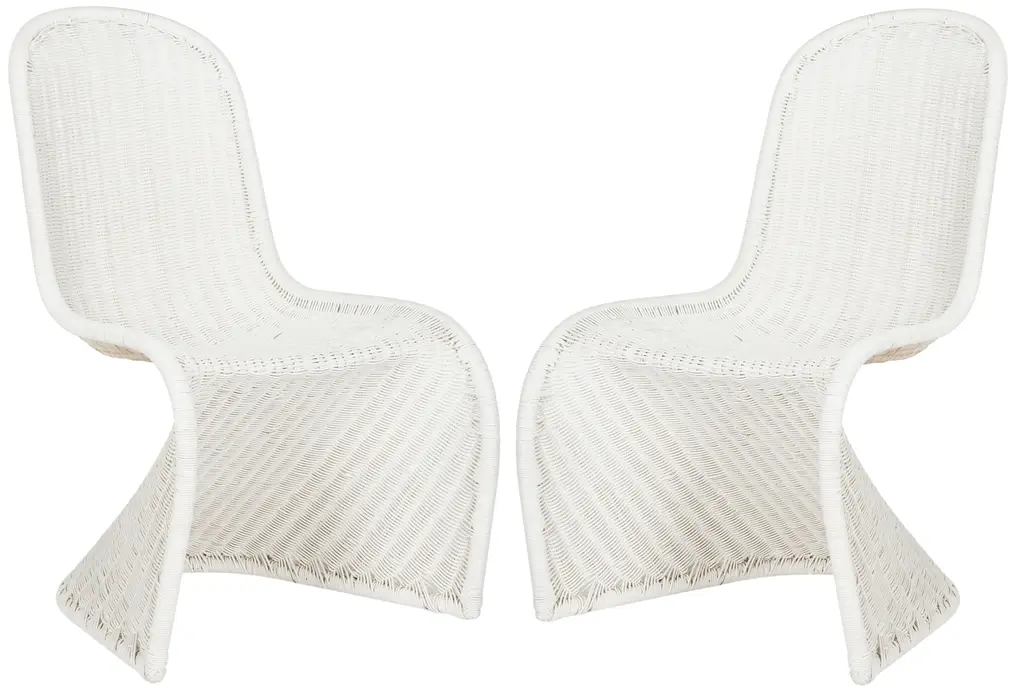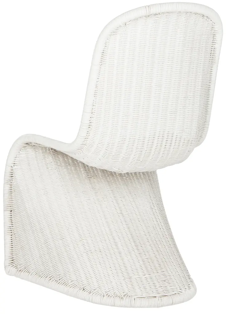 This contemporary wicker side chair is reminiscent of Verner Panton’s Danish design classics. Crafted in a neutral shade of white, it's modern curves and geometric weave pattern bring a elevated sensibility to the well-appointed residence. Dust regularly with a soft, dry cloth. Never use oiled or treated cloths on lacquered finishes. Some finishes can be wiped with a damp (not wet) cloth, followed at once by rubbing with a dry cloth to remove fingerprints and smudges. For persistent spots, gently clean with a soft cloth and a solution of water and mild soap, make sure to wipe dry. Use adhesive felt pads, coasters and placemats to protect your furniture.