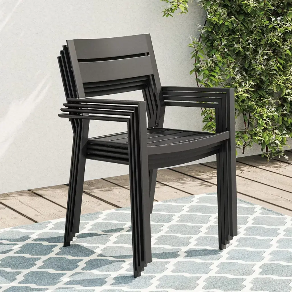 These patio stackable dining chairs are a perfect choice for your outdoor dining area. Their simple and modern style adds a touch of sophistication.The stackable design is a great space-saver, making storage a breeze. Whether used for daily meals or outdoor gatherings, these chairs offer both style and functionality, creating a comfortable and inviting dining experience.