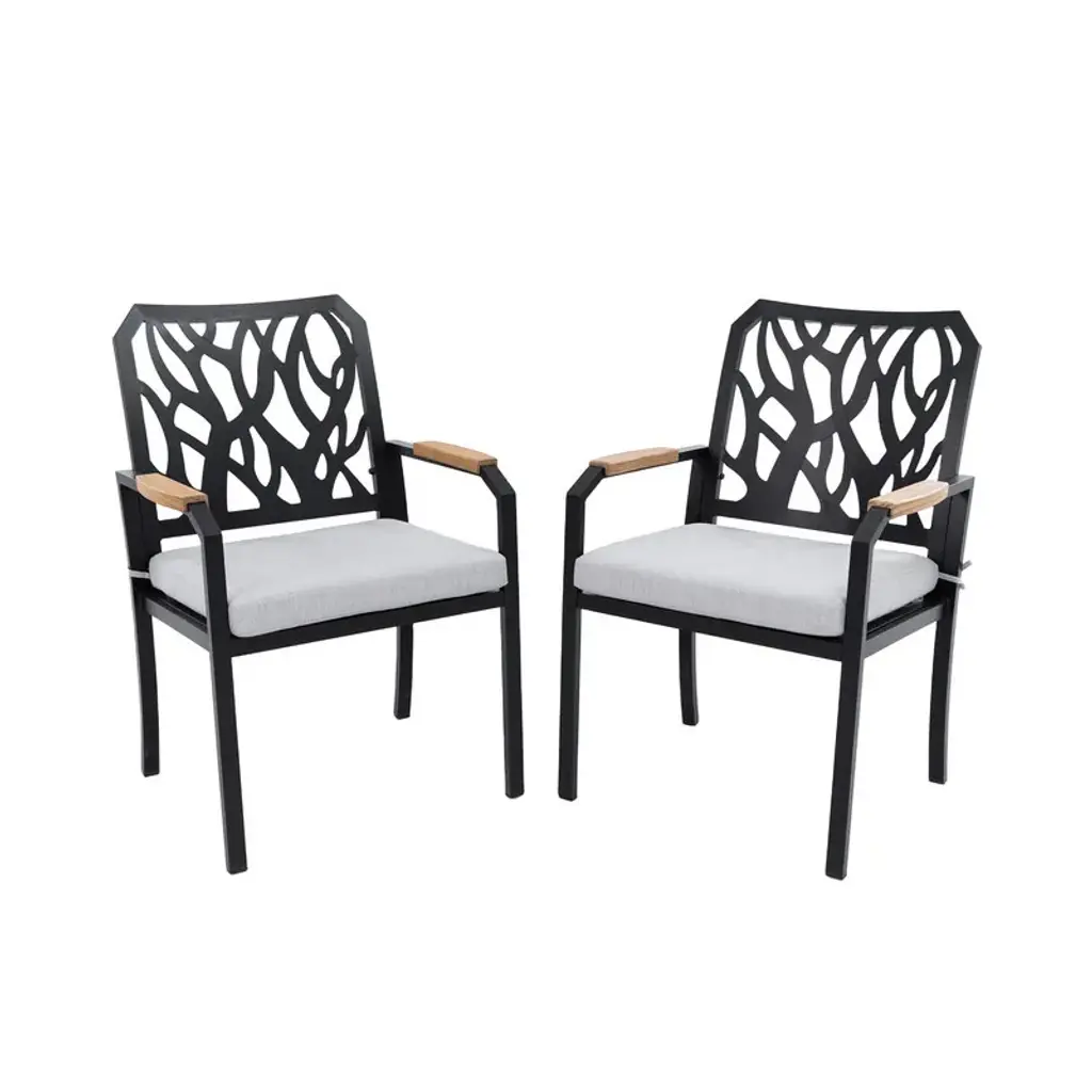 Moepisy Set Of 2 Metal Outdoor Stacking Dining Armchair Black