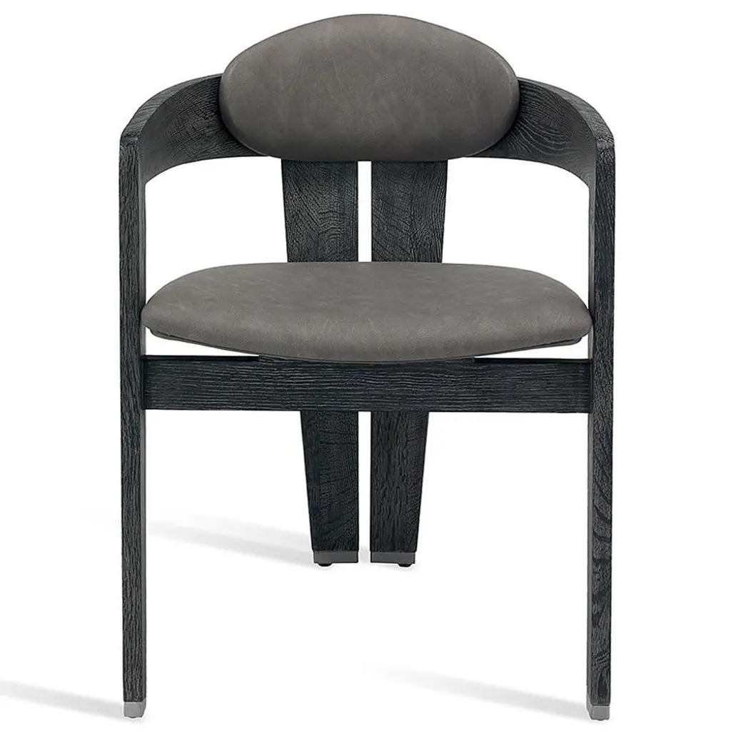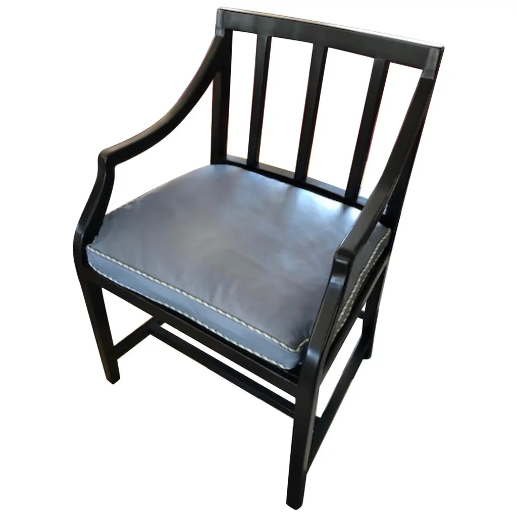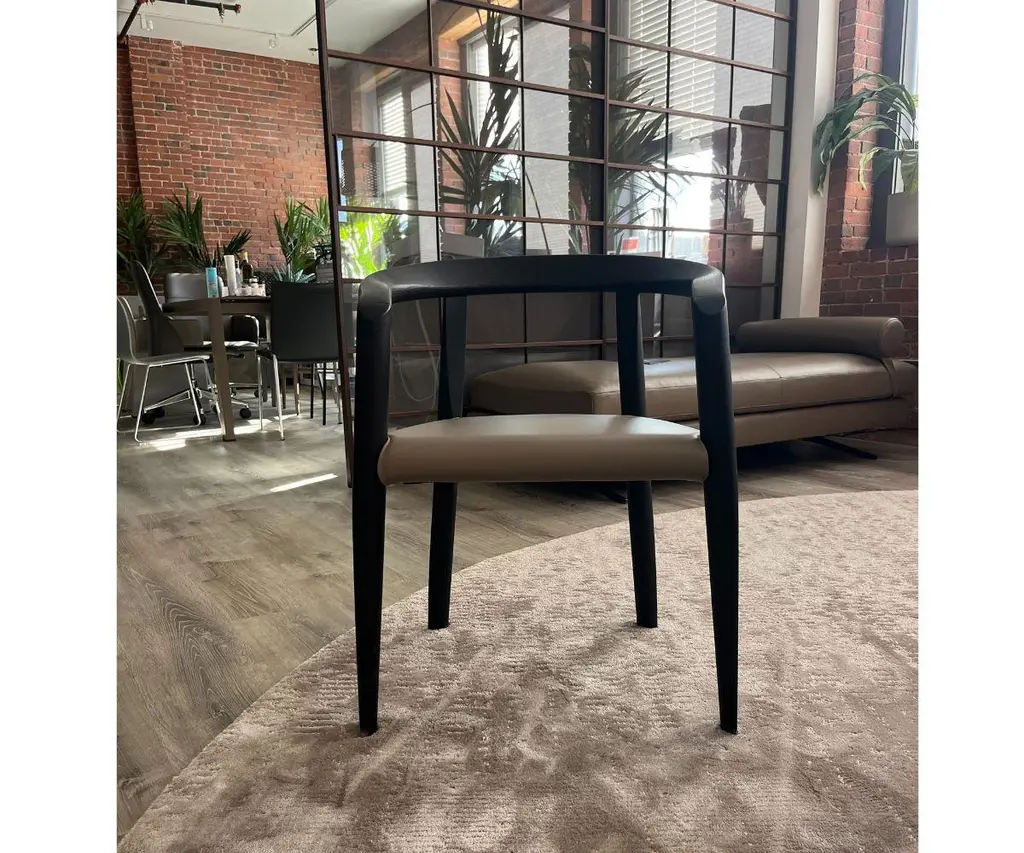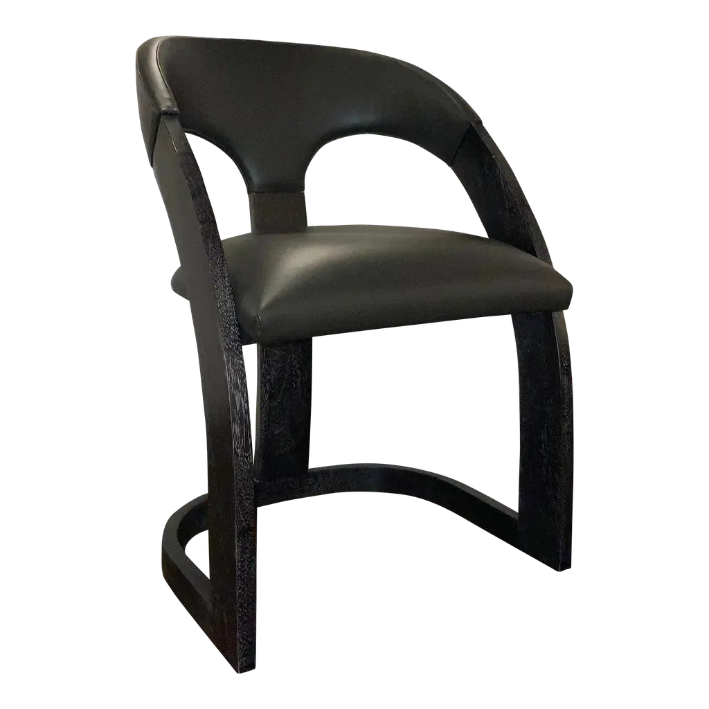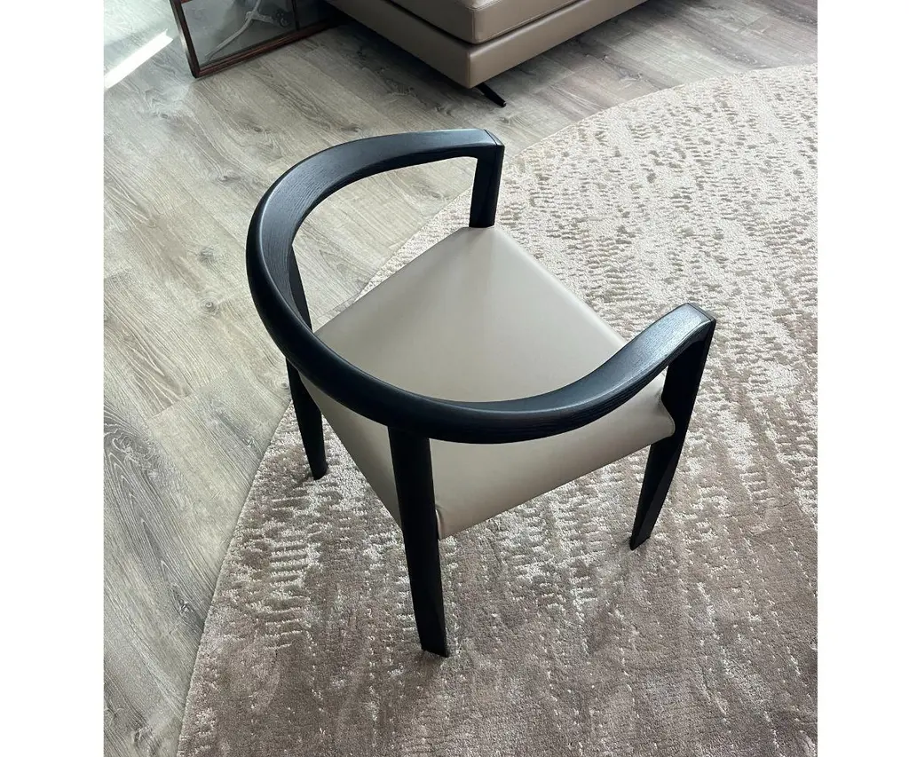 Designed by Tobia ScarpaMiss chair, designed by Afra and Tobia Scarpa in 1986. The form is linked to a system of soft, unbroken, linear rhythms. The legs are slim and divaricated, to ensure stability. The front ones are bent to form the armrests and continue into the curve of the backrest. The back legs reach the backrest from behind, underpinning it. The seat is inserted between the lines and links them. Tobia Scarpa has re-designed the armrest joint to make the chair comfier and more linear. BLACK ASH WOOD STRUCTURE - Extra, L209 LEATHER SEATx2 Chairs Available