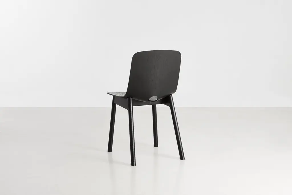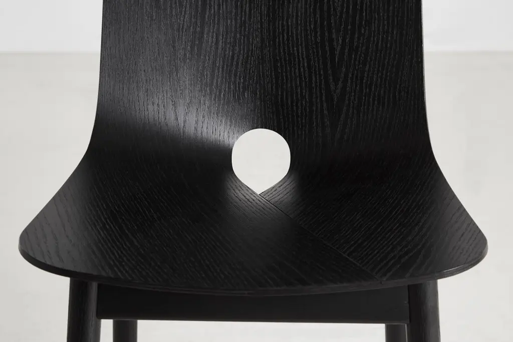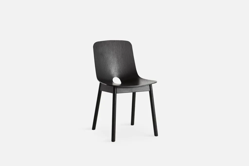 Mono black dining chair by Kasper NymanMaterials: Solid Oak, Oak VennerDimensions: D 51 x W 45 x H 78 cmWoudThe founders, Mia and Torben Koed, decided to put their 30 years of experience into a new project. It was time for a change and a new challenge. The challenge was to build an ambitious design brand from the ground up with high-quality materials and great attention to the little details. With a drive to create new originals, the Woud collection is founded upon the idea to look ahead instead of looking back and share the love for honest design. Therefore, we are eager to discover and develop new ideas whether it being in form, function or choice of material. Kasper NymanFreelance multi-disciplinary designer, animator, creative and art director, with 13+ years of international professional experience with clients like Nike, Adidas, New Balance, Hummel, ESPN, Intel, Mercedes, NBA, NFL and the MLB. Based in Copenhagen with my wife, daughter and son. Love working visually, experience a global market, and creating something creative in an ordinary world.