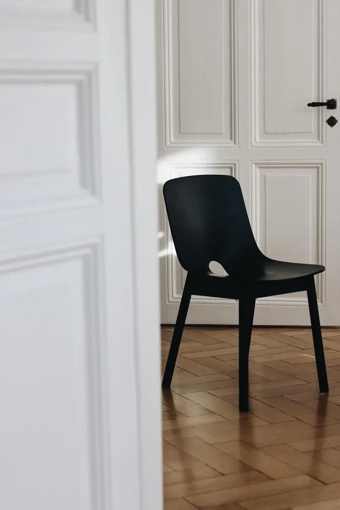 Mono white dining chair by Kasper Nyman.Materials: Solid Oak, Oak Venner.Dimensions: D 51 x W 45 x H 78 cm.WOUDThe founders, Mia and Torben Koed, decided to put their 30 years of experience into a new project. It was time for a change and a new challenge. The challenge was to build an ambitious design brand from the ground up with high-quality materials and great attention to the little details. With a drive to create new originals, the WOUD collection is founded upon the idea to look ahead instead of looking back and share the love for honest design. Therefore, we are eager to discover and develop new ideas whether it being in form, function or choice of material. Kasper NymanFreelance multi-disciplinary designer, animator, creative and art director, with 13+ years of international professional experience with clients like Nike, Adidas, New Balance, Hummel, ESPN, Intel, Mercedes, NBA, NFL and the MLB. Based in Copenhagen with my wife, daughter and son. Love working visually, experience a global market, and creating something creative in an ordinary world.