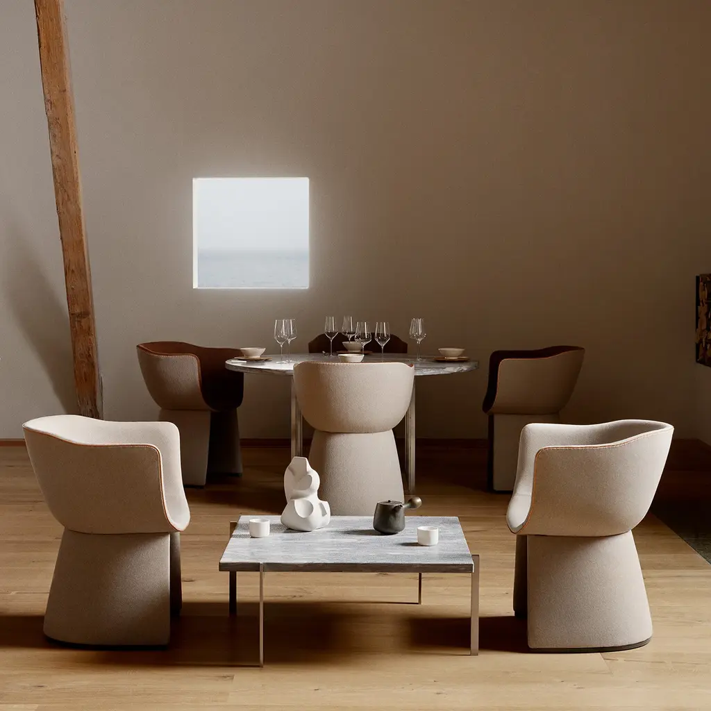 Designed for Fritz Hansen by Danish designer Cecilie Manz, The Monolit™ Dining Chairs blends comfort with a contemporary edge. Its sculpted frame offers a comfortable embrace, while discreet storage beneath adds a practical touch. Finished with refined leather piping, it brings effortless elegance to any dining experience.