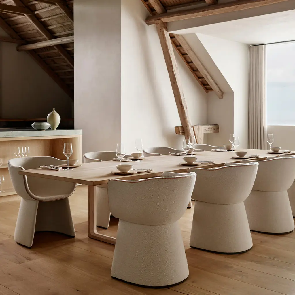 The Monolit by Cecilie Manz is a contemporary and distinct chair design that elevates dining and lounge atmospheres with soft-featured elegance and a tranquil expression. Cocooning the guest in a welcoming embrace, the Monolit's organic curves and sheltering shape offer a sense of privacy and a space underneath to safely store personal belongings. The Monolit can be customised with a range of upholstery options and piping to establish a curated look for interiors both commercial and private. The refined design offers solid stability for long dining experiences. Available in two heights for optimal lounging and dining arrangements.