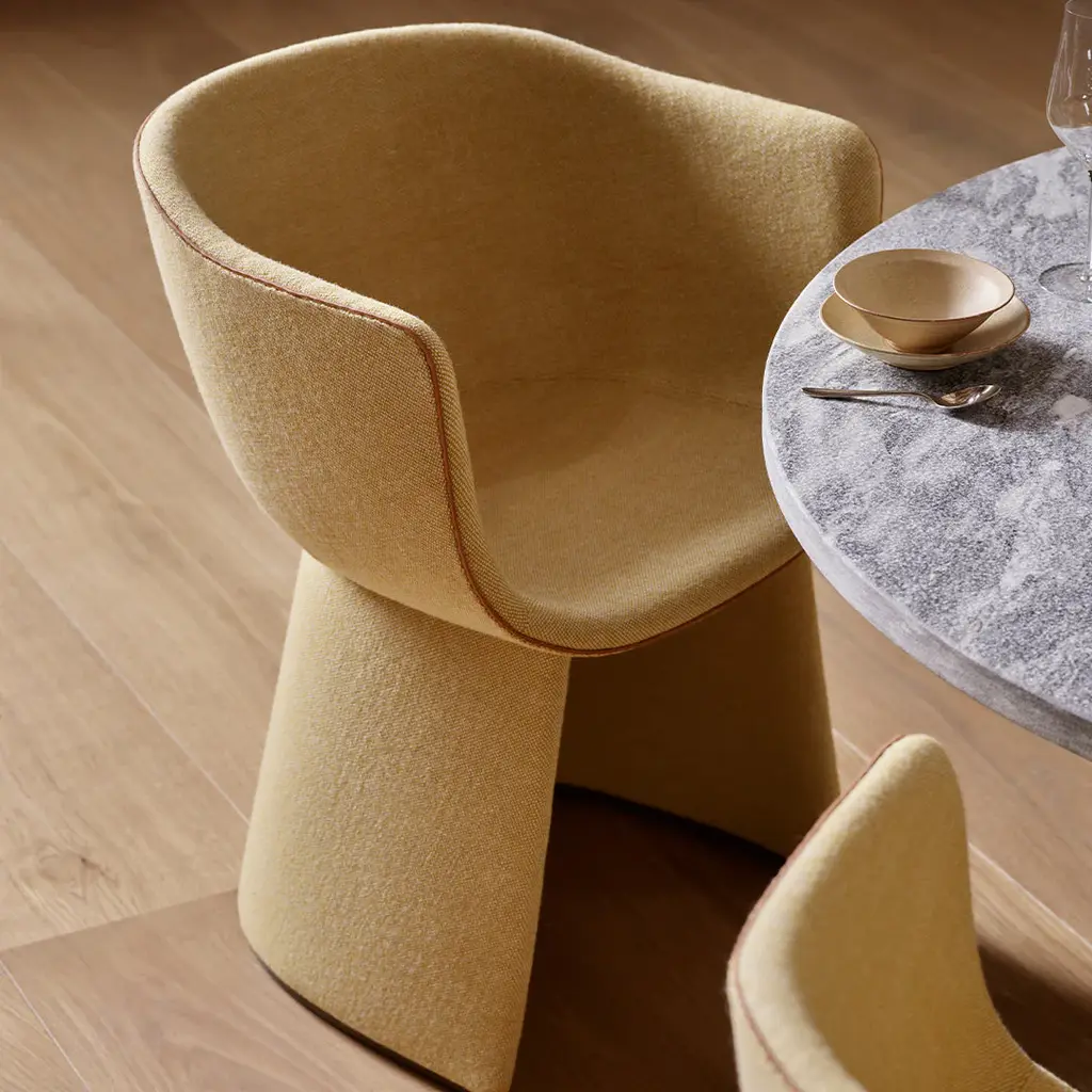 The Monolit by Cecilie Manz is a contemporary and distinct chair design that elevates dining and lounge atmospheres with soft-featured elegance and a tranquil expression. Cocooning the guest in a welcoming embrace, the Monolit's organic curves and sheltering shape offer a sense of privacy and a space underneath to safely store personal belongings. The Monolit can be customised with a range of upholstery options and piping to establish a curated look for interiors both commercial and private. The refined design offers solid stability for long dining experiences. Available in two heights for optimal lounging and dining arrangements.