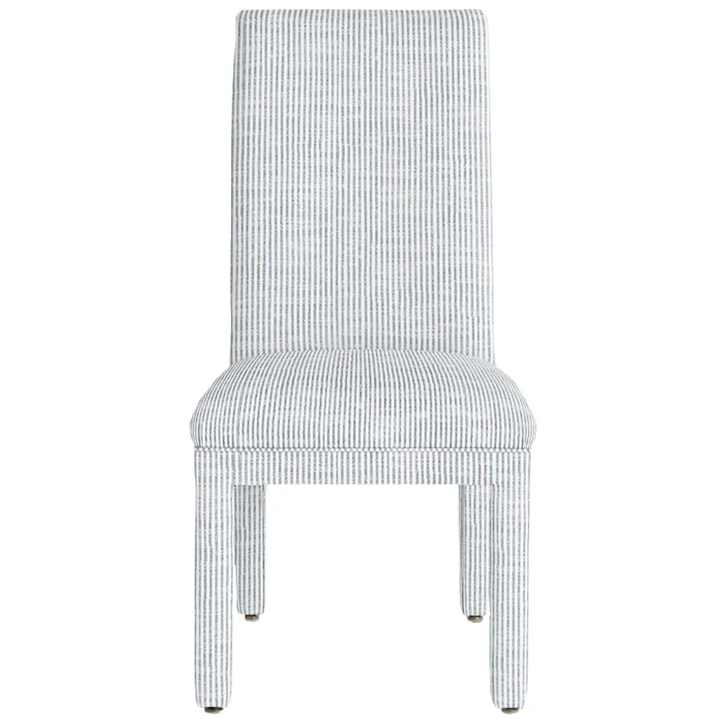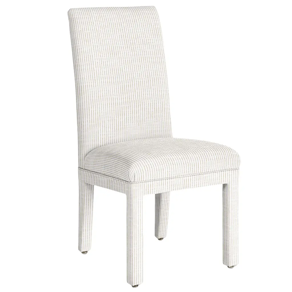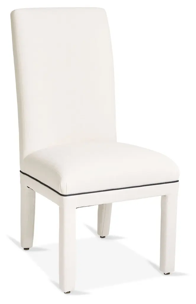 Exclusive to One Kings Lane: This elegant fully upholstered dining chair features a tight seat and tight back with an upholstered leg. It is upholstered in Inside Out, an eco-friendly high-performance fabric that repels stains, spills, bacteria, mold and offers UV fading characterisitics. Constructed of an engineered hardwood-laminate frame and a Pirelli Webbed suspension system which ensures lasting comfort and support. Each piece is handcrafted by skilled artisans in High Point, NC and offers a lifetime warranty on the frame and suspension system.