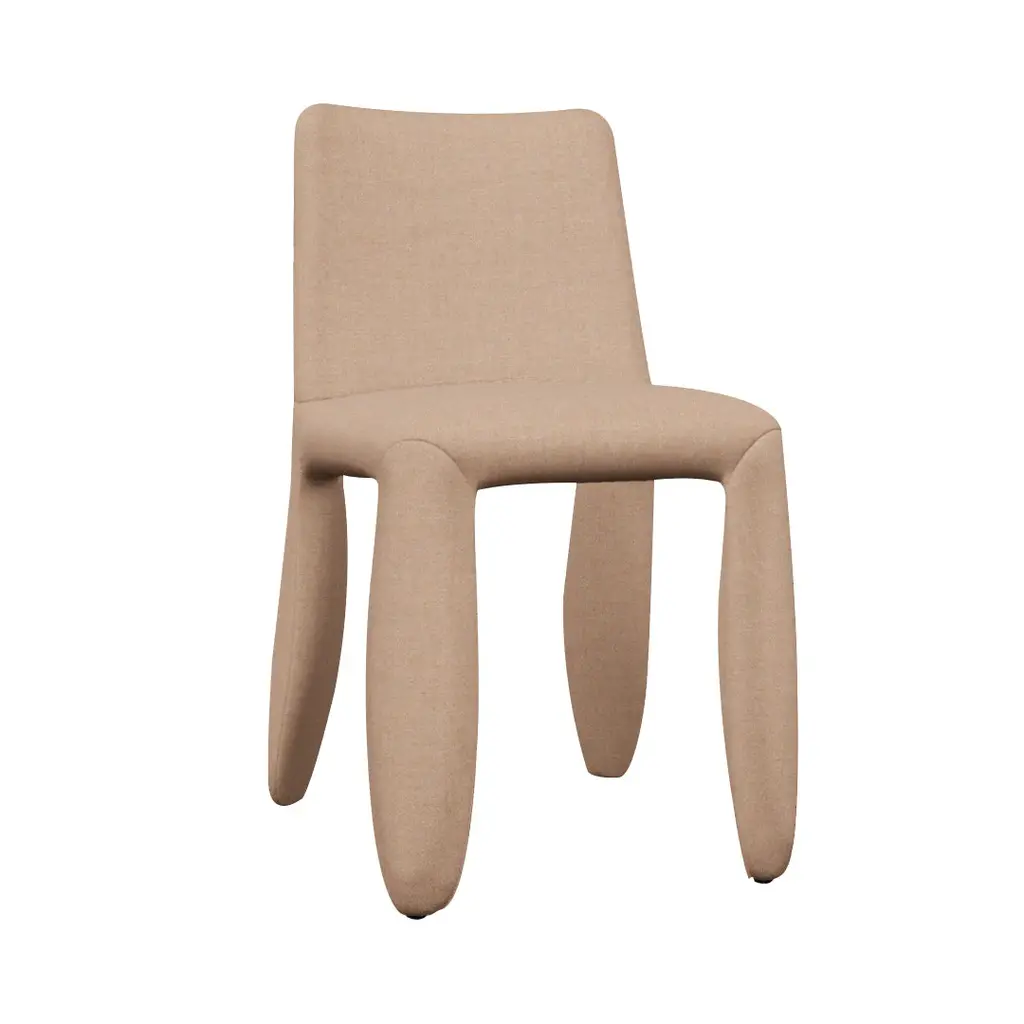 “Naked” in the parlance of Dutch designer Marcel Wanders is descriptive shorthand for the unquilted version of his free-form padded side chair. But with its soft puffy covering, Monster is a comfy seating experience with its own special brand of panache. Straight out of Marcel’s dreams, his signature side chair has a life of its own in a nearly infinite range of premium upholstery offerings.