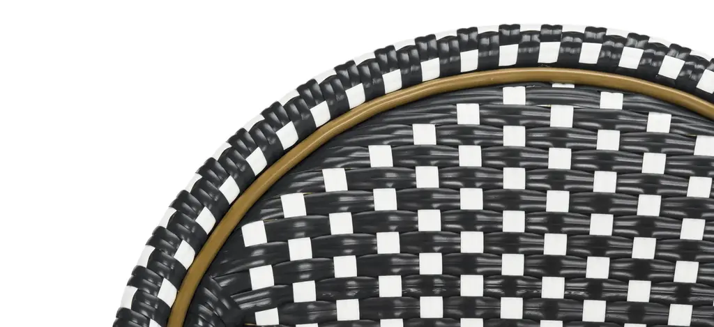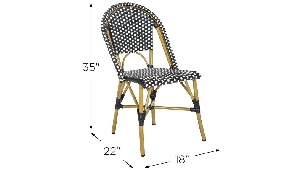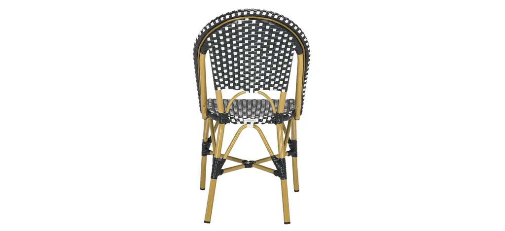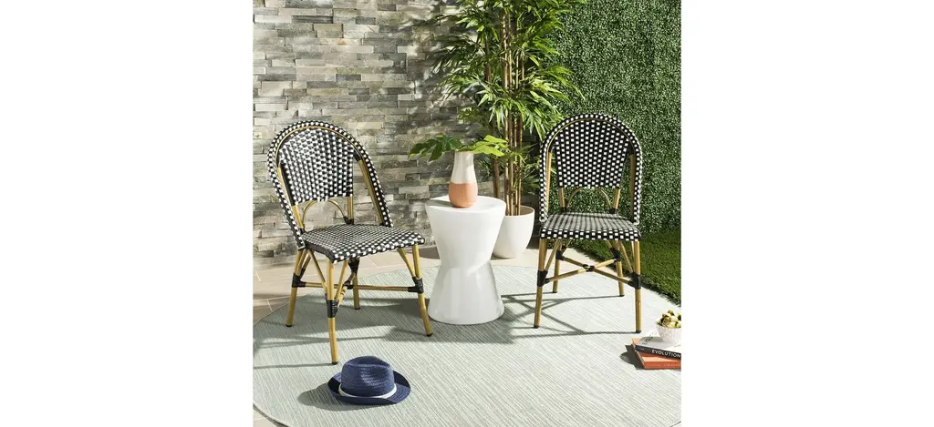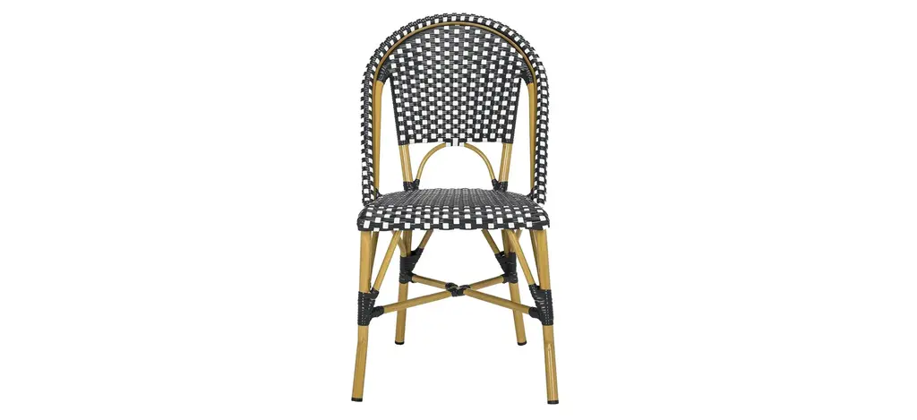 Whether your style is country or coastal, the Montez indoor\outdoor side chair from Safavieh is a colorful solution to extra guest seating. Inspired by classic European bistro chairs, Montez is crafted of black and white wicker and aluminum faux bamboo for easy care.