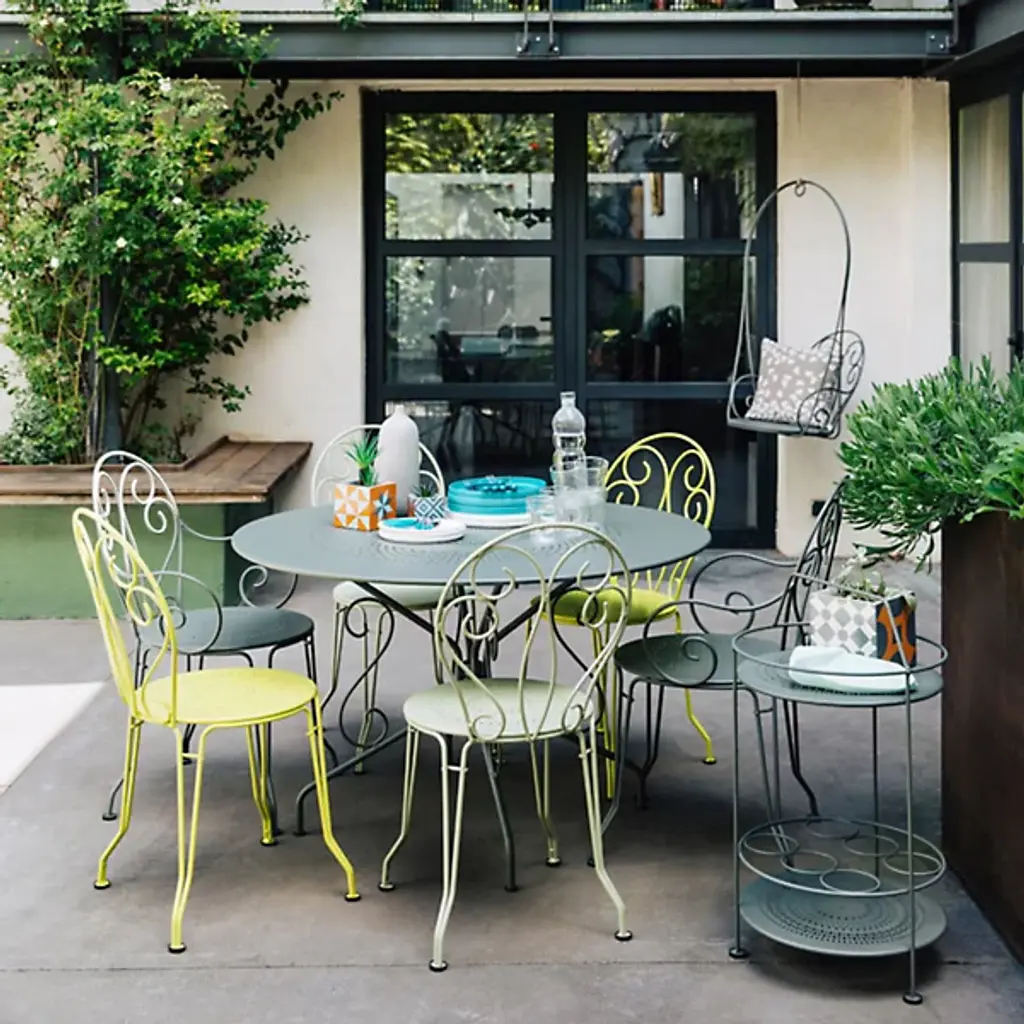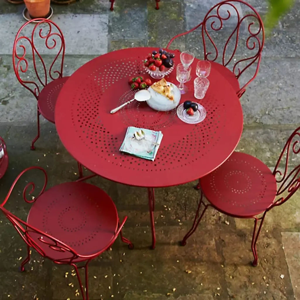 Named after a large hill in Paris, the Fermob Montmartre Stacking Armchair - Set of 2 will certainly be the high point of any elegant outdoor dining set. The curvaceous frame is made out of slender rods of steel, while the seat is a perforated round of sheet steel. Enhance the chair's curves--as well as its surroundings--with one of over 2 dozen available powder coated finishes.
