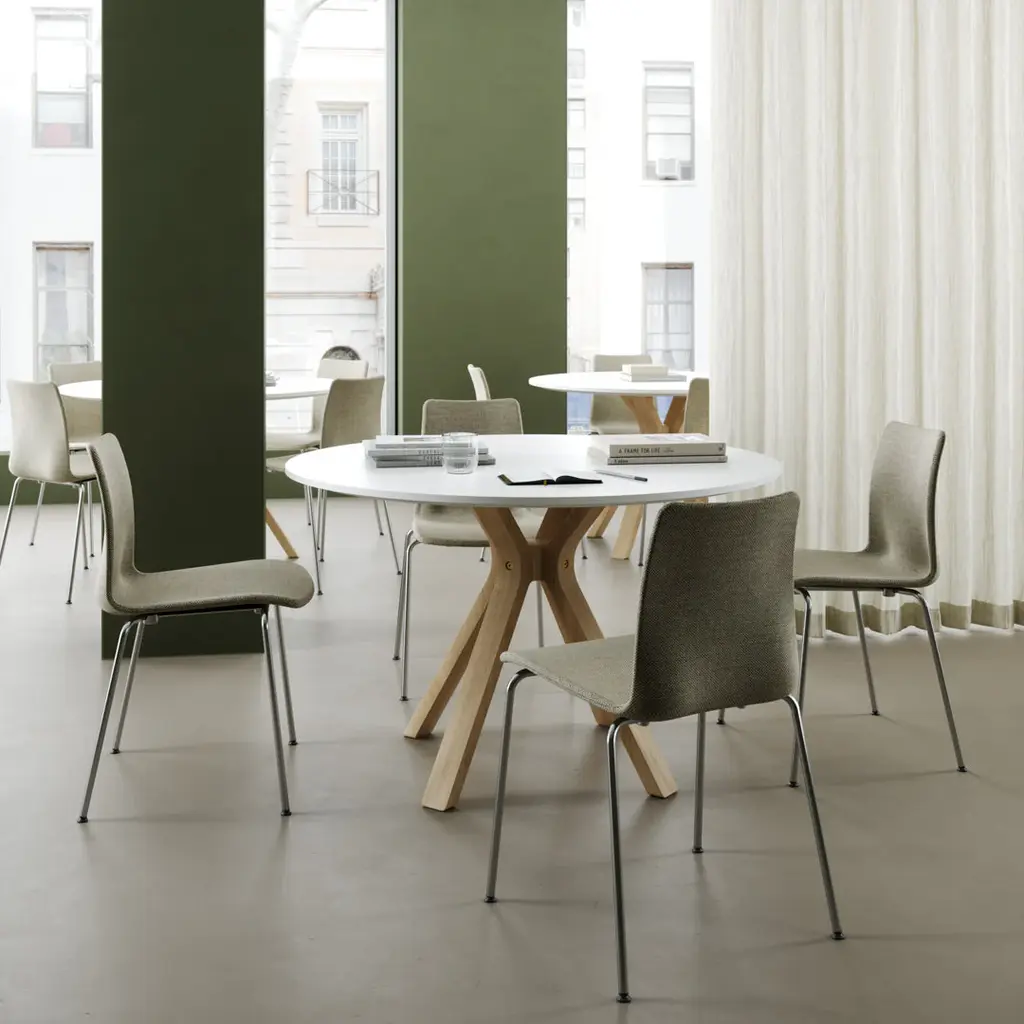 Mood combines tactile surfaces with aesthetics and function in the most beautiful way and allows you to create the right atmosphere and the right environment for your surroundings. Mood is a versatile chair, and the curved shapes create a perfect comfort and a beautiful light expression. The shaped seat plays on subtle references to the human body and creates a great seating comfort. The Mood chair is certified with the EU Ecolabel and made with an upcycled shell made from 100% upcycled plastic from industry waste. The purpose of the EU Ecolabel is to reduce the products overall environmental impact and this certificate is your guarantee that every single part has been tested and approved to meet the most stringent environmental requirements.