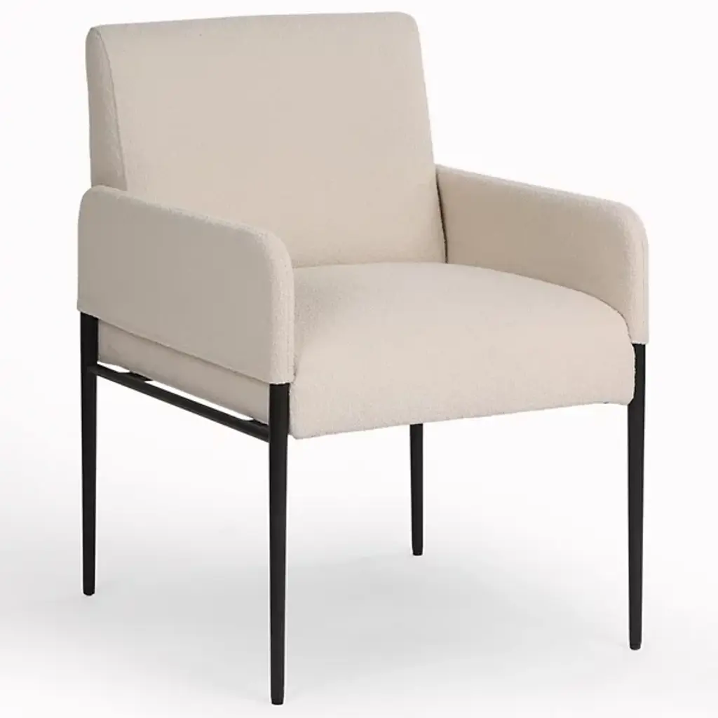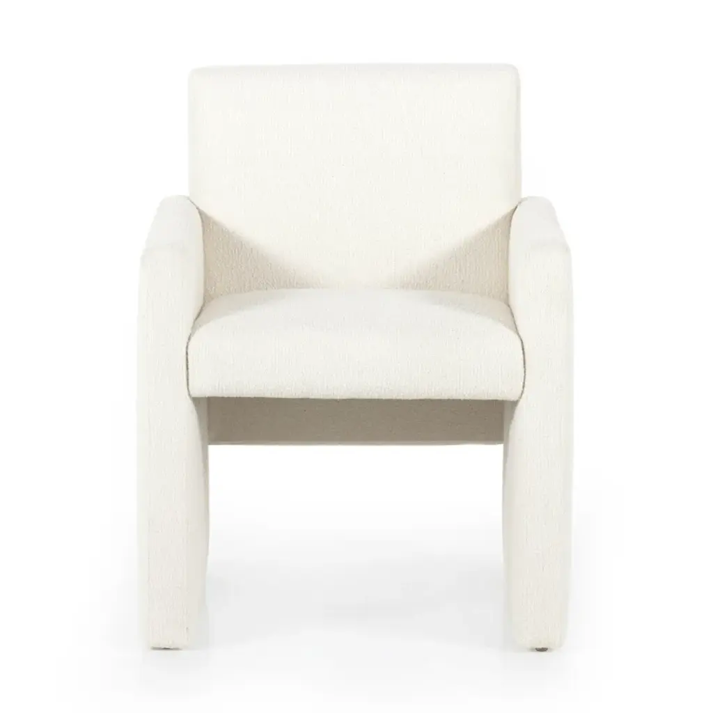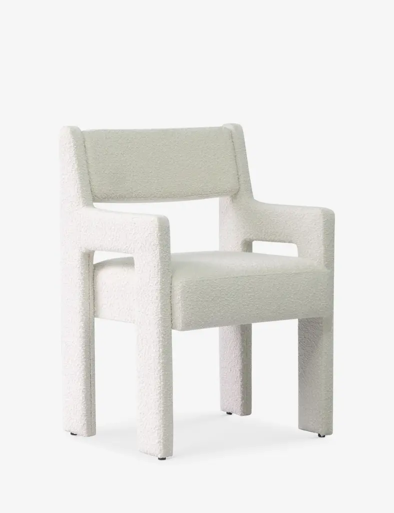 Furniture design studio Sun at Six seeks to help create open, natural spaces with their line of minimalist furniture. The Morel dining arm chair emphasizes comfort in its high-style design, featuring a wide footprint and backrest with a clean silhouette that shows thick lines from one angle and thin from another. This dining seat's allover upholstery offers a chic touch of texture at your table.