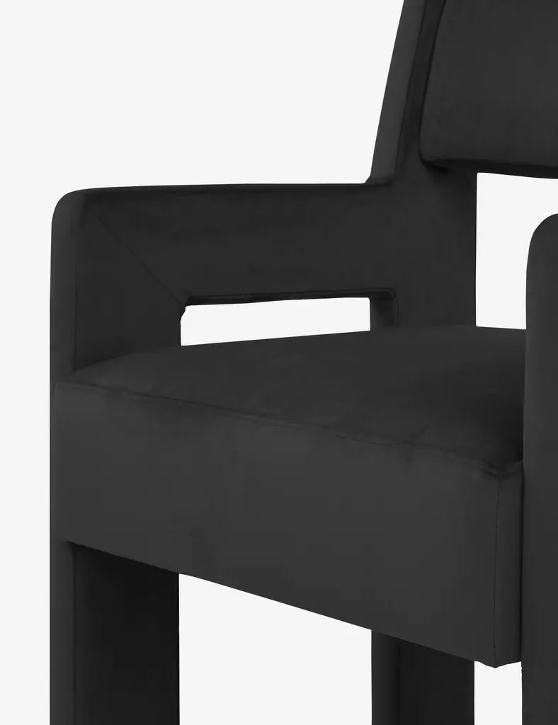 Furniture design studio Sun at Six seeks to help create open, natural spaces with their line of minimalist furniture. The Morel dining arm chair emphasizes comfort in its high-style design, featuring a wide footprint and backrest with a clean silhouette that shows thick lines from one angle and thin from another. This dining seat's allover upholstery offers a chic touch of texture at your table.