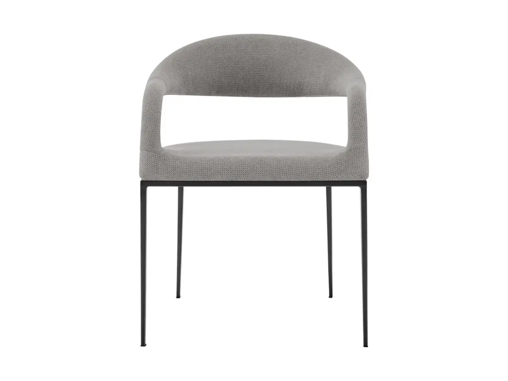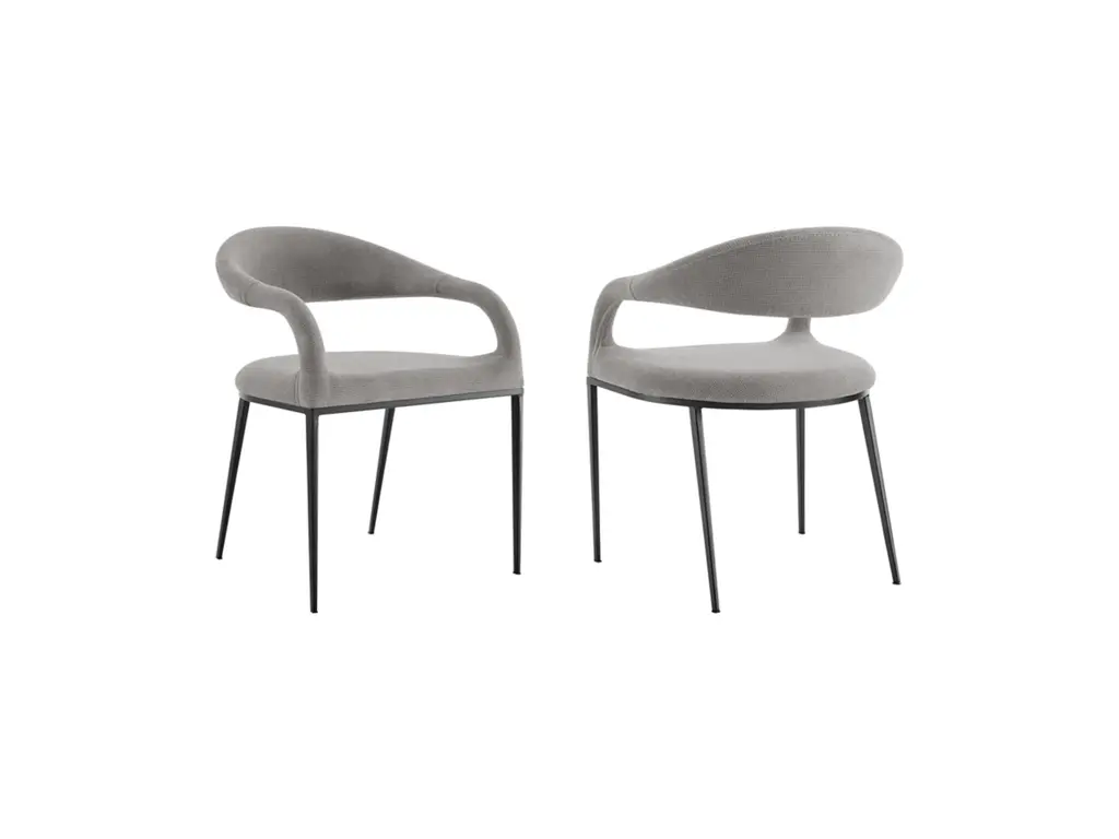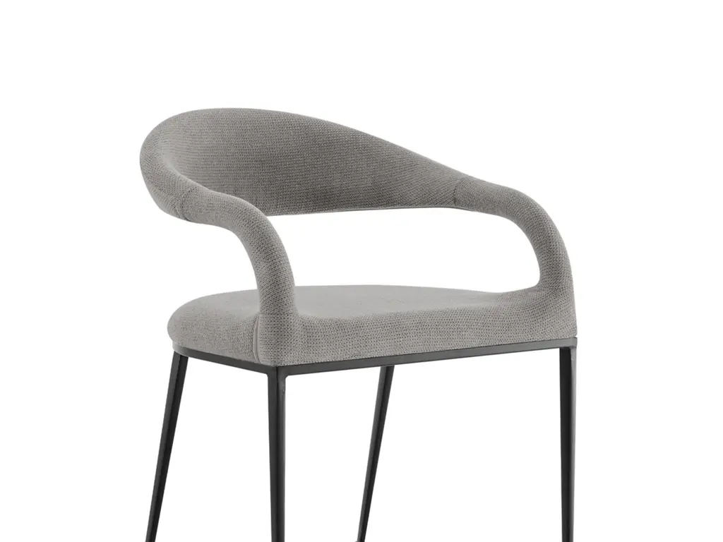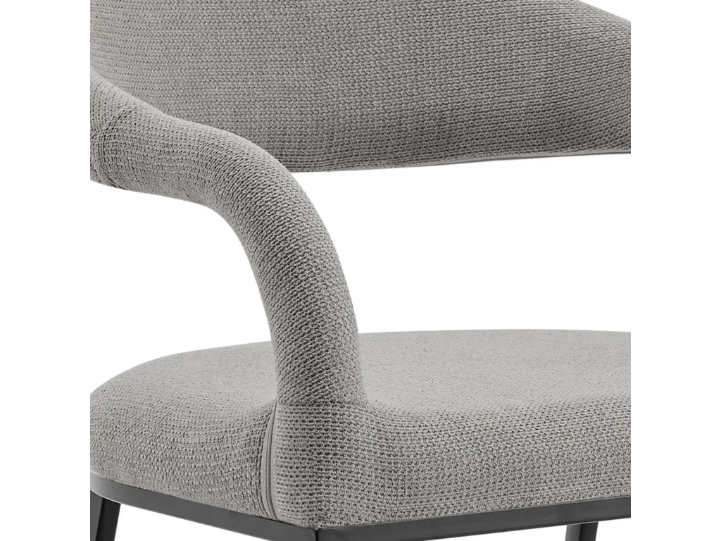 Transform any space with the luxurious charm and comfort of the Morgan Dining Chair in Fabric and Metal - Set of 2 by Armen Living. The cozy yet streamlined profile of our chair offers comfort with a touch of opulence. Its beautifully curved back and seamlessly flowing arms lend refinement to this dining chair and any room you put it in. The back, arms, and seat cushion are fully upholstered to offer hours of comfort. The Morgan chair is covered in performance fabric, which provides easy care and maintenance. Perched on four slender legs, this dining chair serves as a stylish complement to any contemporary or modern room. From casual to formal meals, elevate your eat-in kitchens and dining rooms to the simple elegance of the Morgan Dining Chair. Beyond dining, it can offer a chic and comfortable accent chair anywhere from your living space to your home office. Available as a set of two, the Morgan Upholstered Dining Chair comes in matte black iron with Light Gray, Charcoal, or Blue Fabric, or brushed stainless steel with Light Gray, Charcoal, or Blue Fabric to bring comfort and grace to your home.